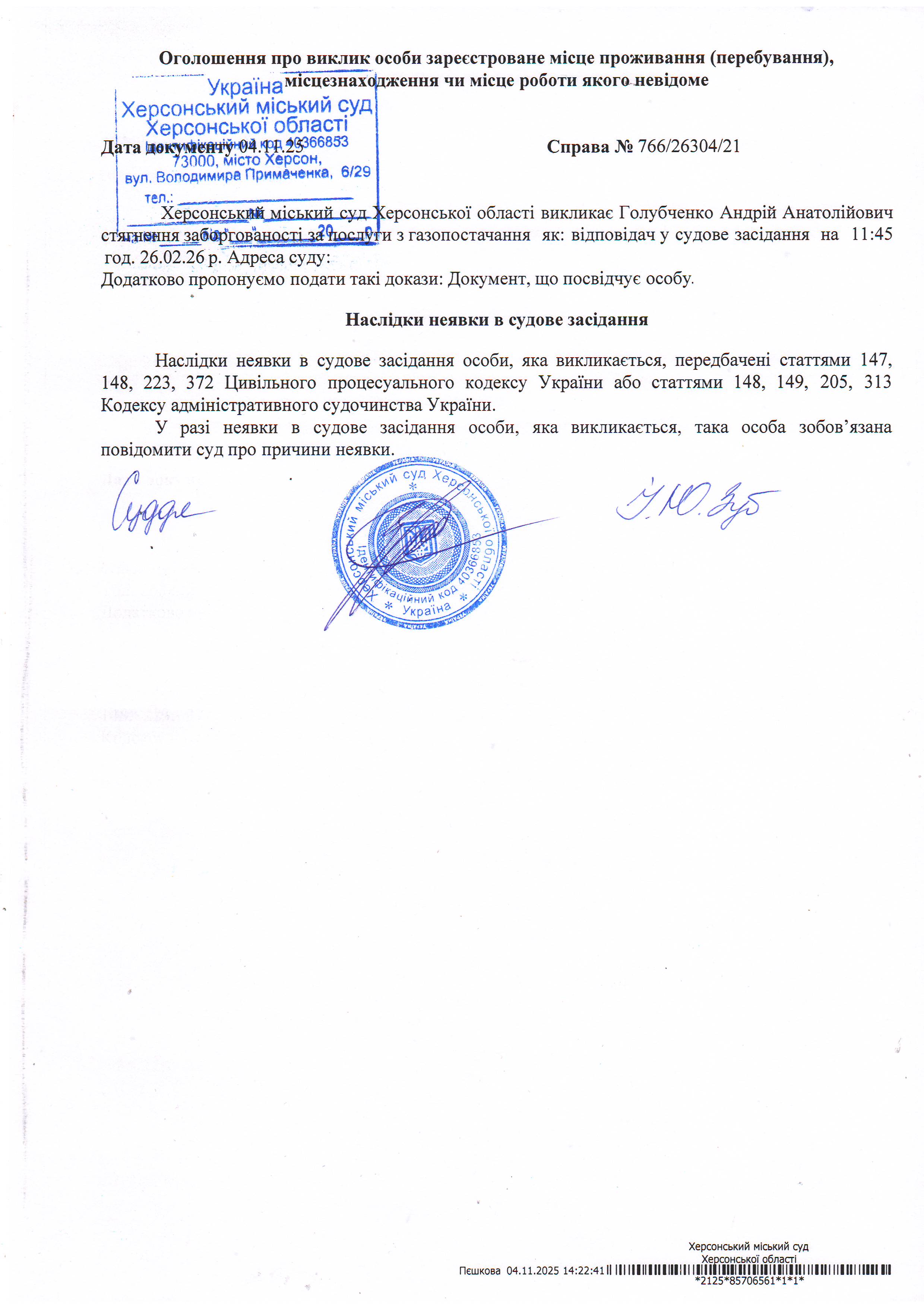 ОГОЛОШЕННЯ ПРО ВИКЛИК ДО СУДУ