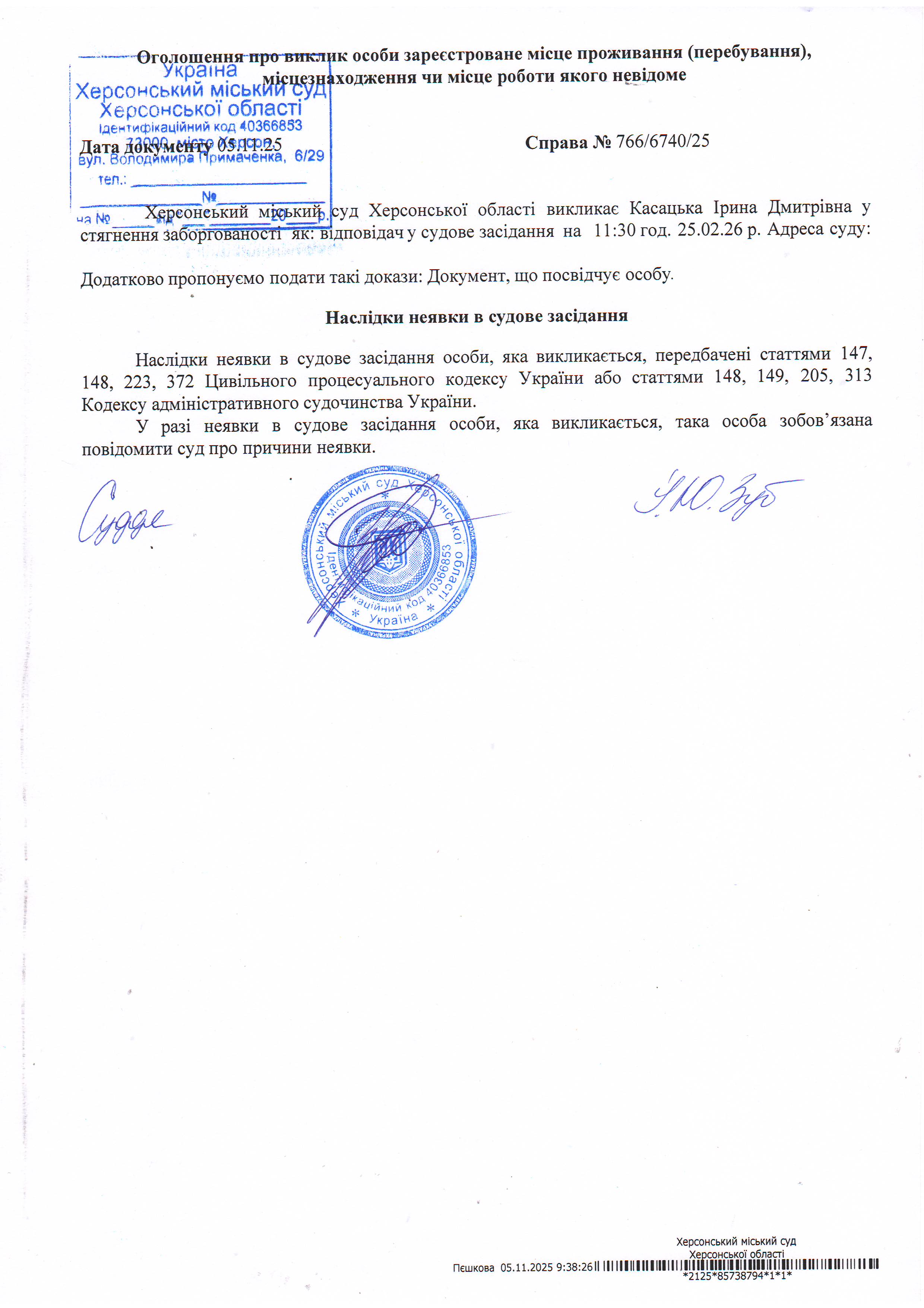ОГОЛОШЕННЯ ПРО ВИКЛИК ДО СУДУ