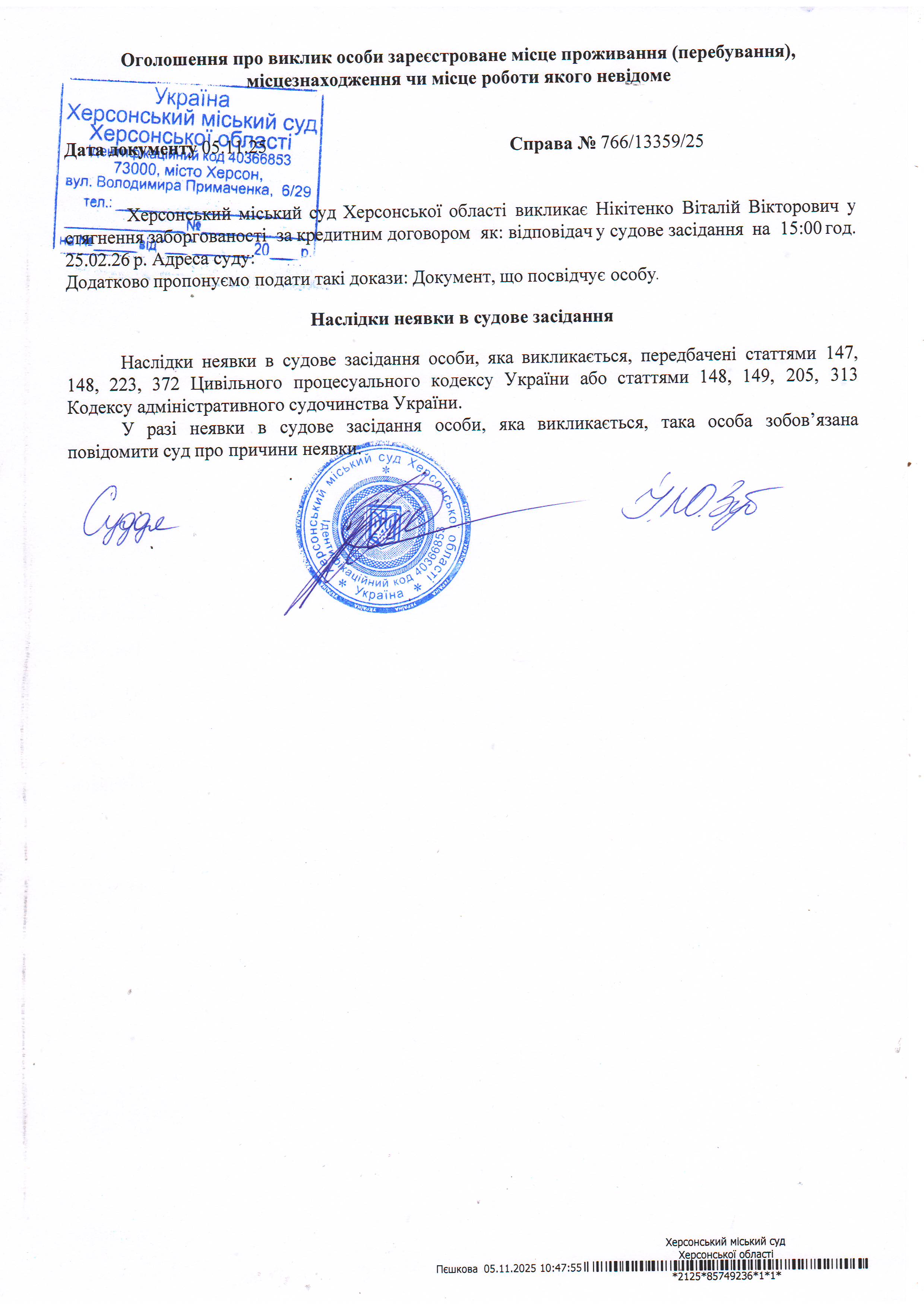 ОГОЛОШЕННЯ ПРО ВИКЛИК ДО СУДУ