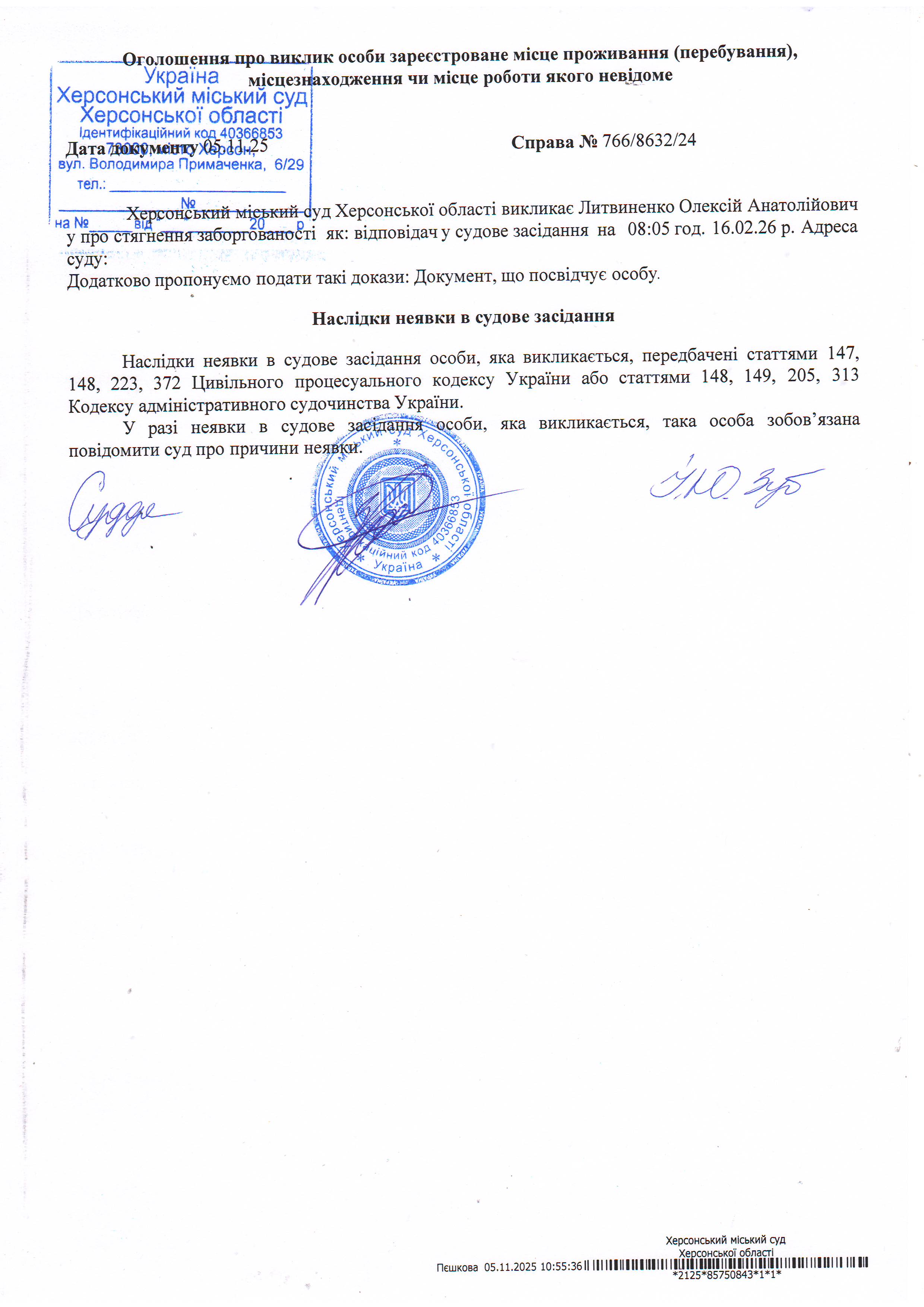 ОГОЛОШЕННЯ ПРО ВИКЛИК ДО СУДУ