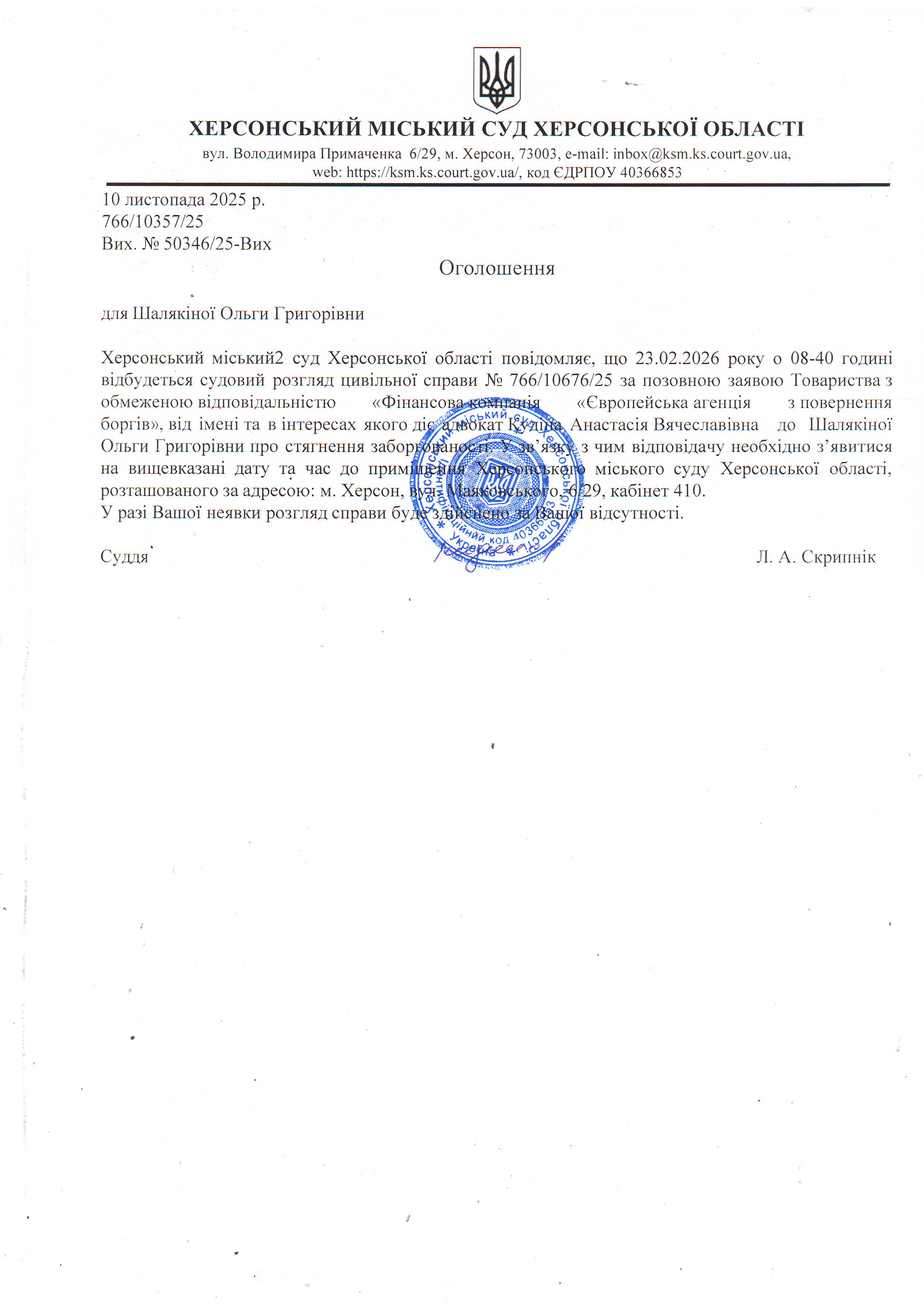 ОГОЛОШЕННЯ ПРО ВИКЛИК ДО СУДУ