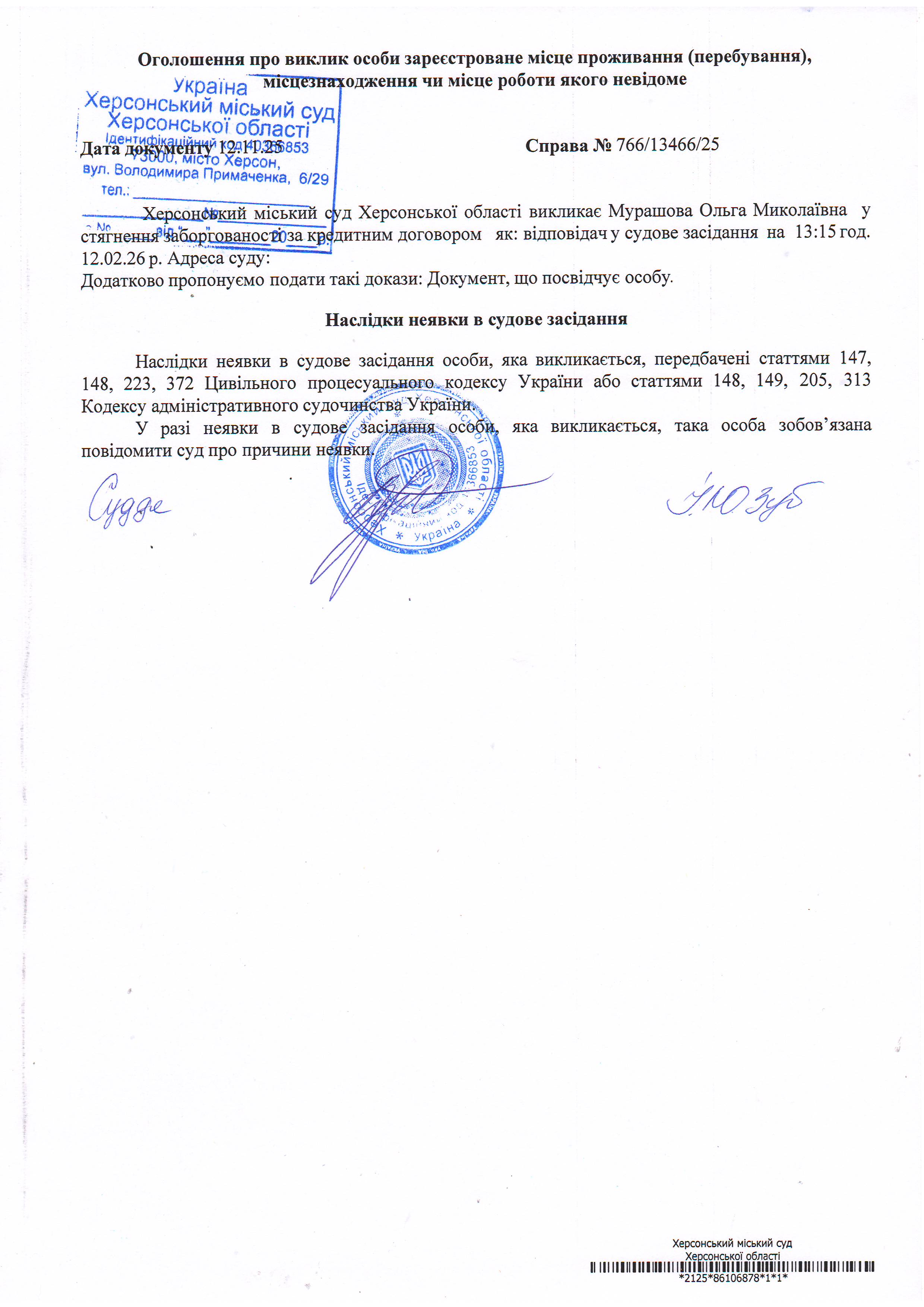 ОГОЛОШЕННЯ ПРО ВИКЛИК ДО СУДУ