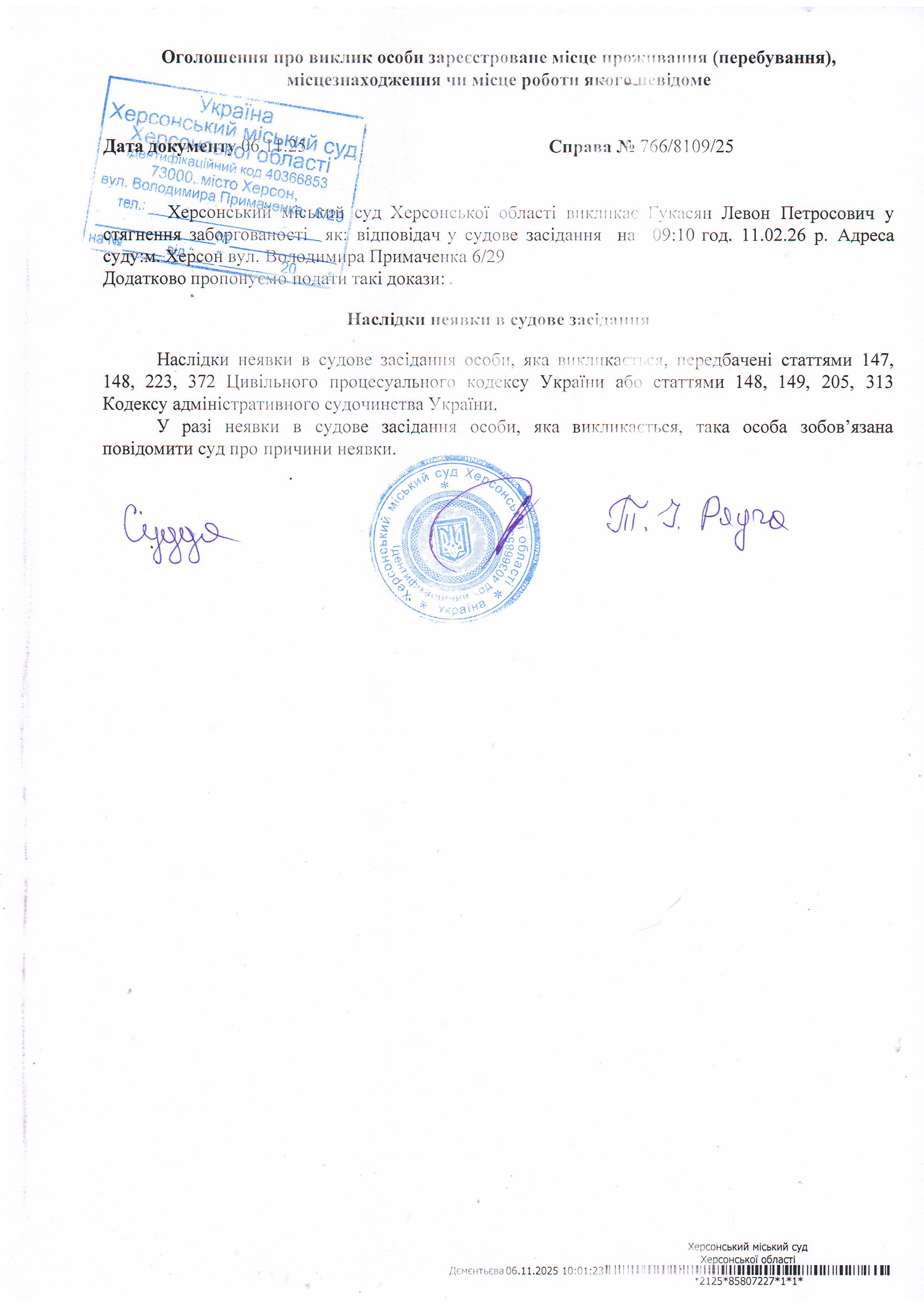 ОГОЛОШЕННЯ ПРО ВИКЛИК ДО СУДУ
