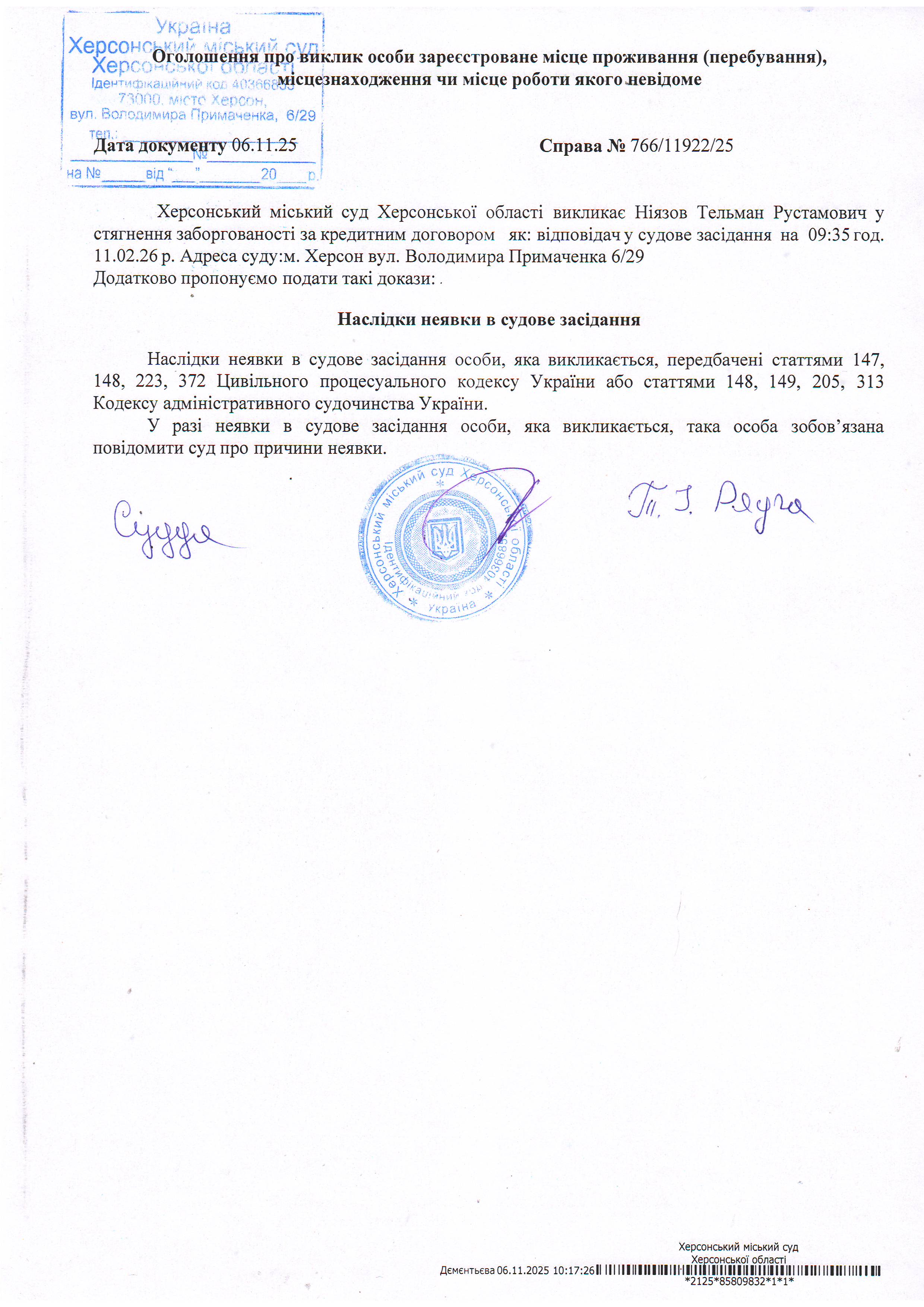 ПОВІДОМЛЕННЯ ПРО РОЗГЛЯД СПРАВИ БЕЗ ВИКЛИКУ СТОРІН