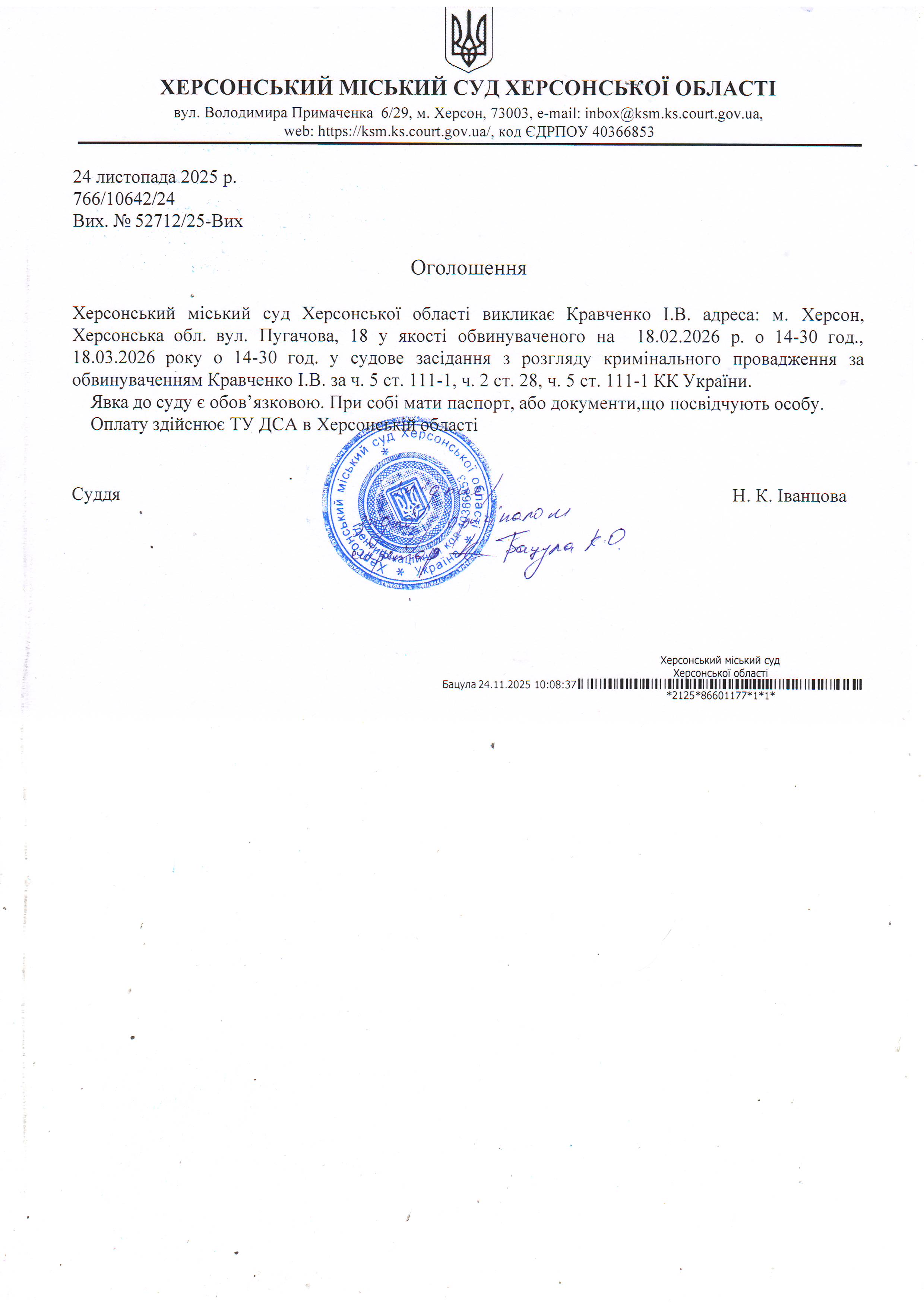 ОГОЛОШЕННЯ ПРО ВИКЛИК ДО СУДУ