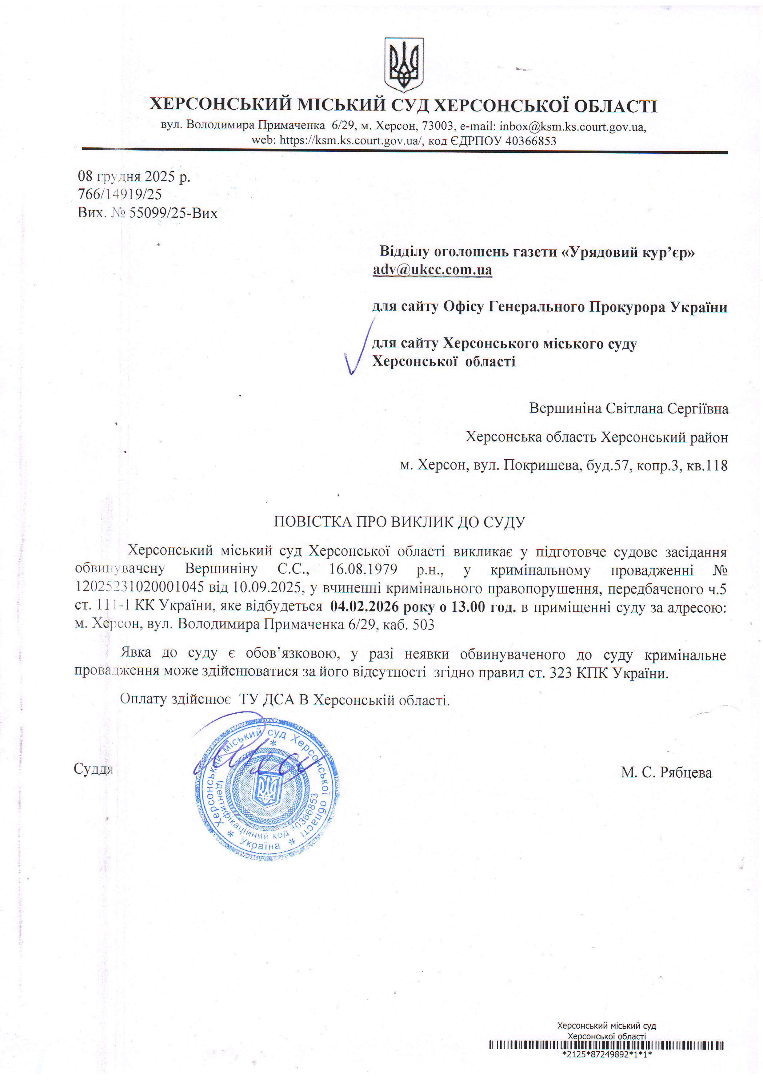 ОГОЛОШЕННЯ ПРО ВИКЛИК ДО СУДУ