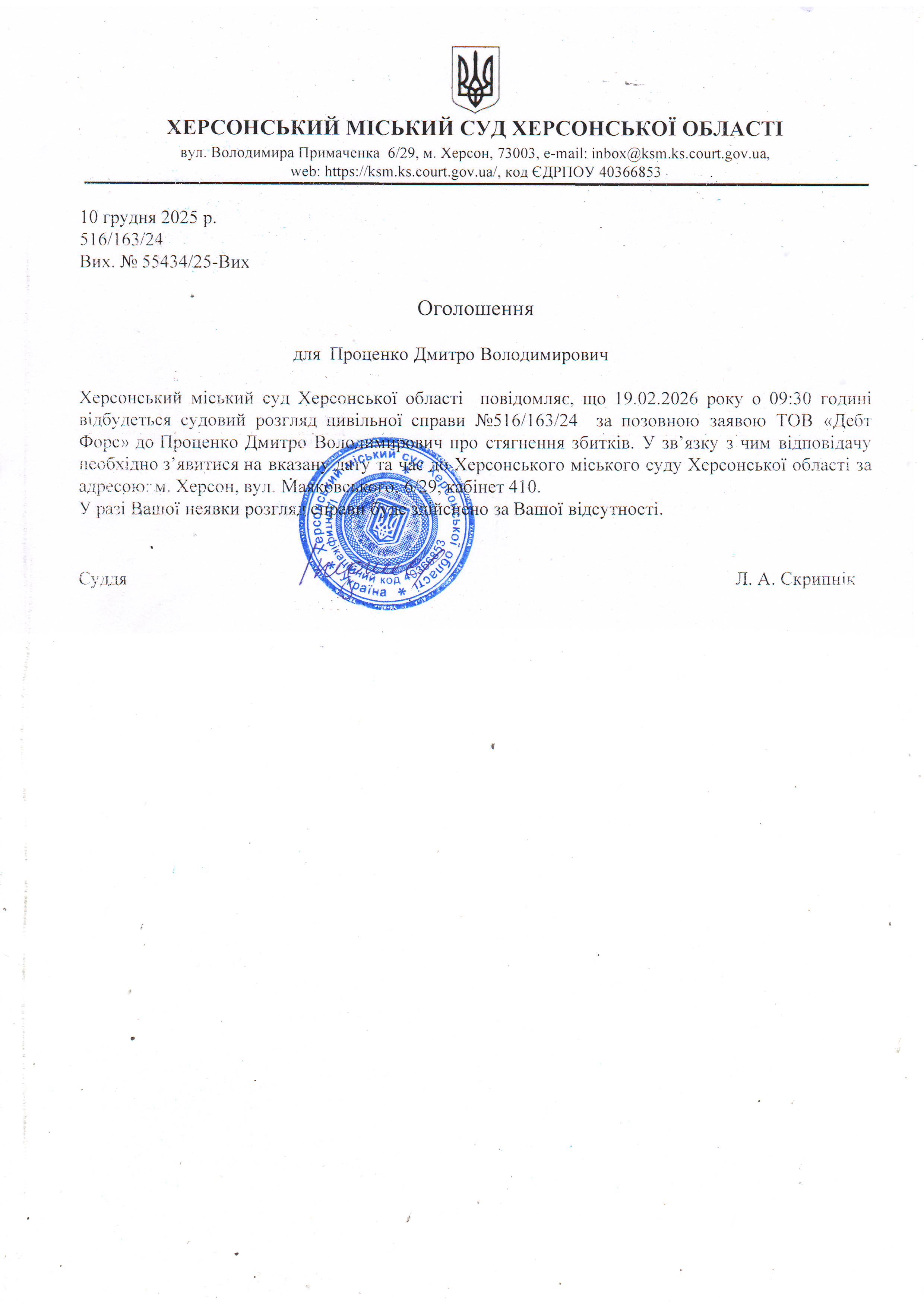 ОГОЛОШЕННЯ ПРО ВИКЛИК ДО СУДУ