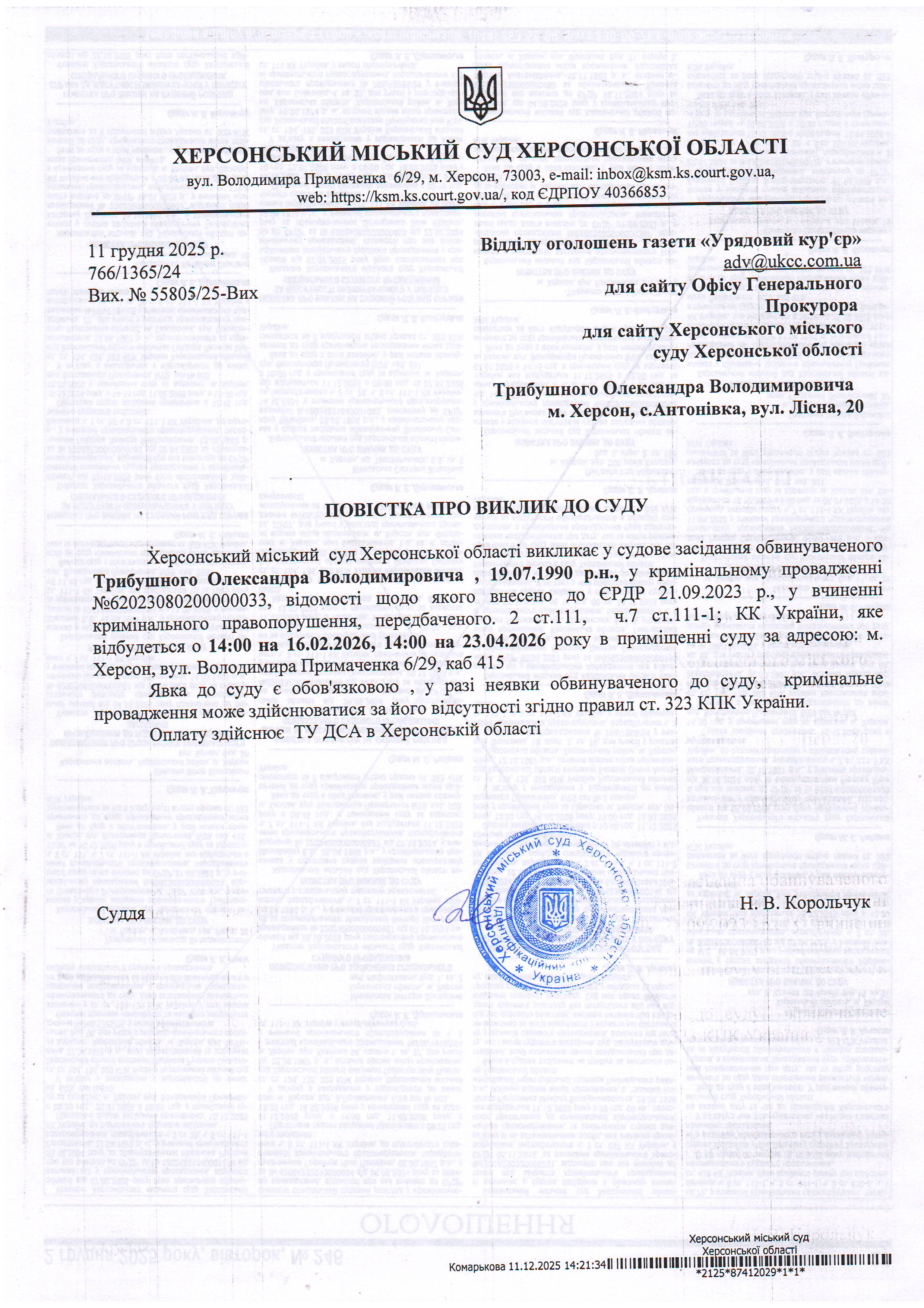ОГОЛОШЕННЯ ПРО ВИКЛИК ДО СУДУ