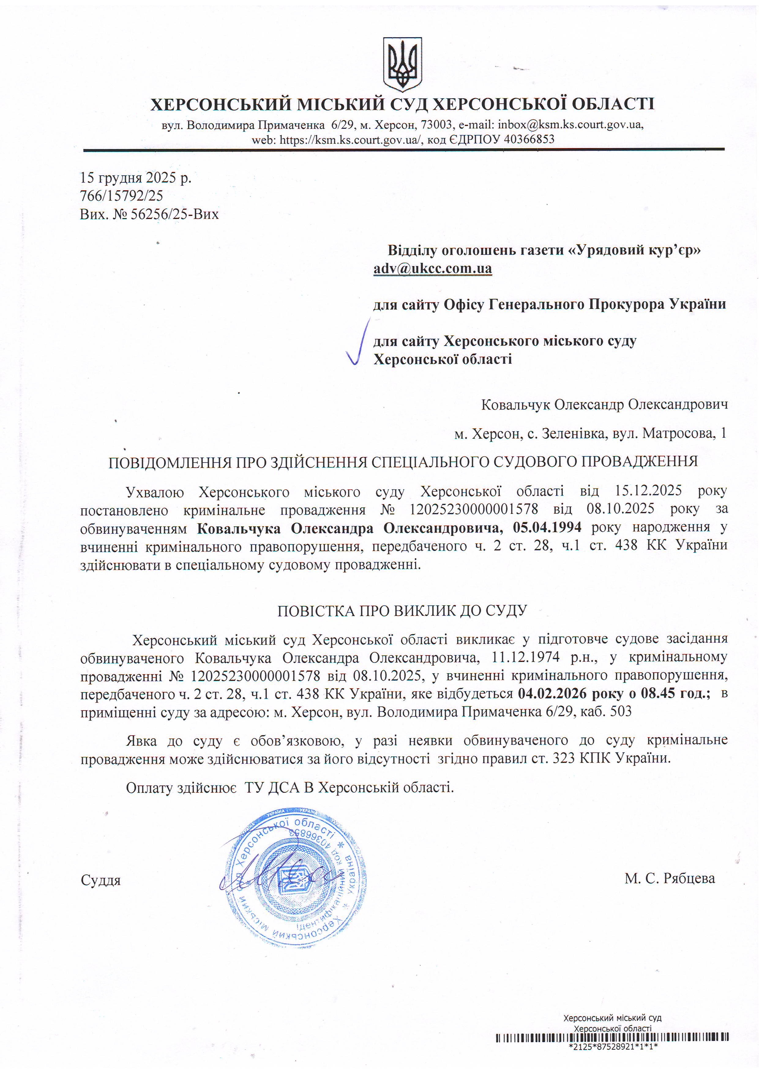 ОГОЛОШЕННЯ ПРО ВИКЛИК ДО СУДУ