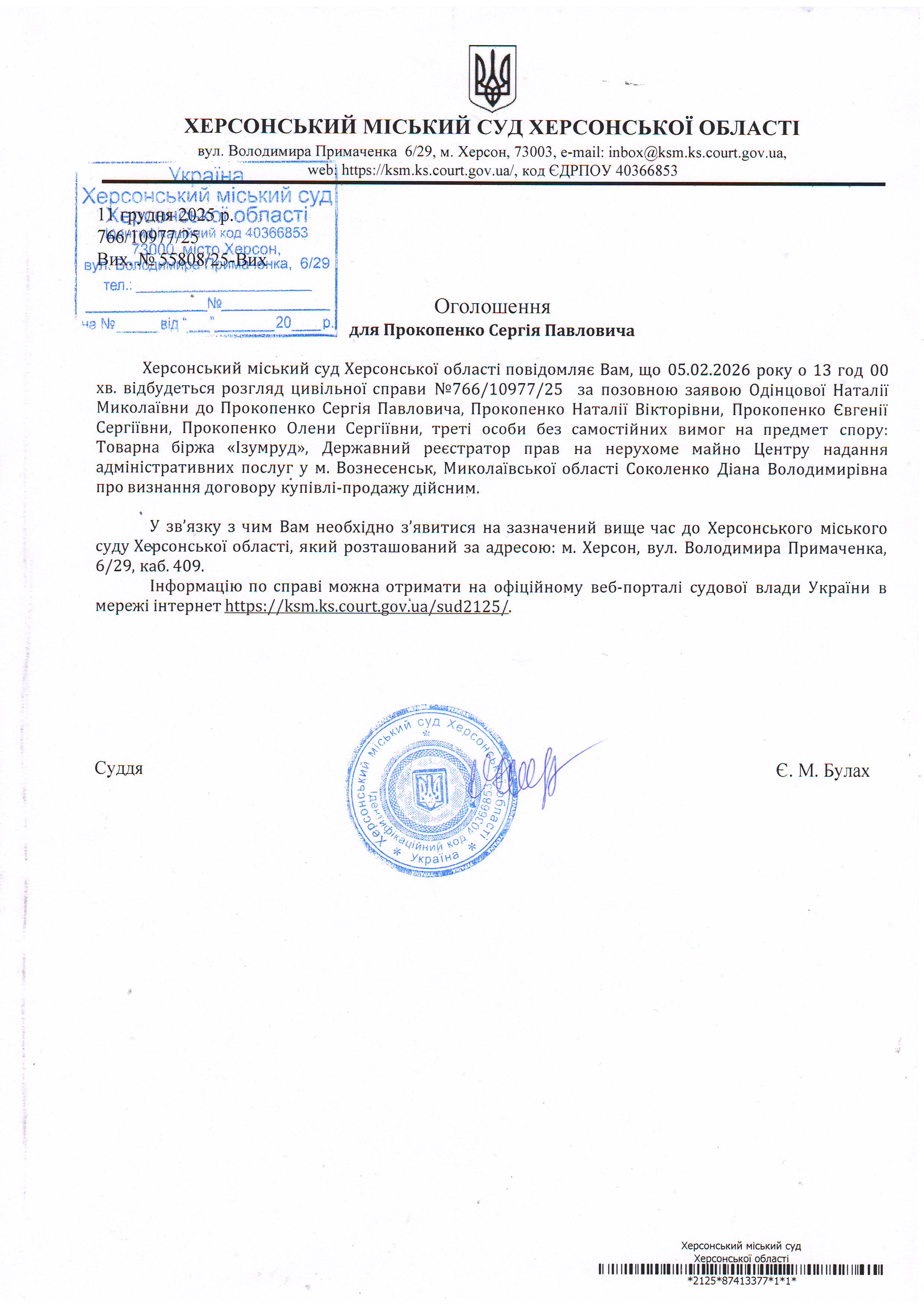 ОГОЛОШЕННЯ ПРО ВИКЛИК ДО СУДУ