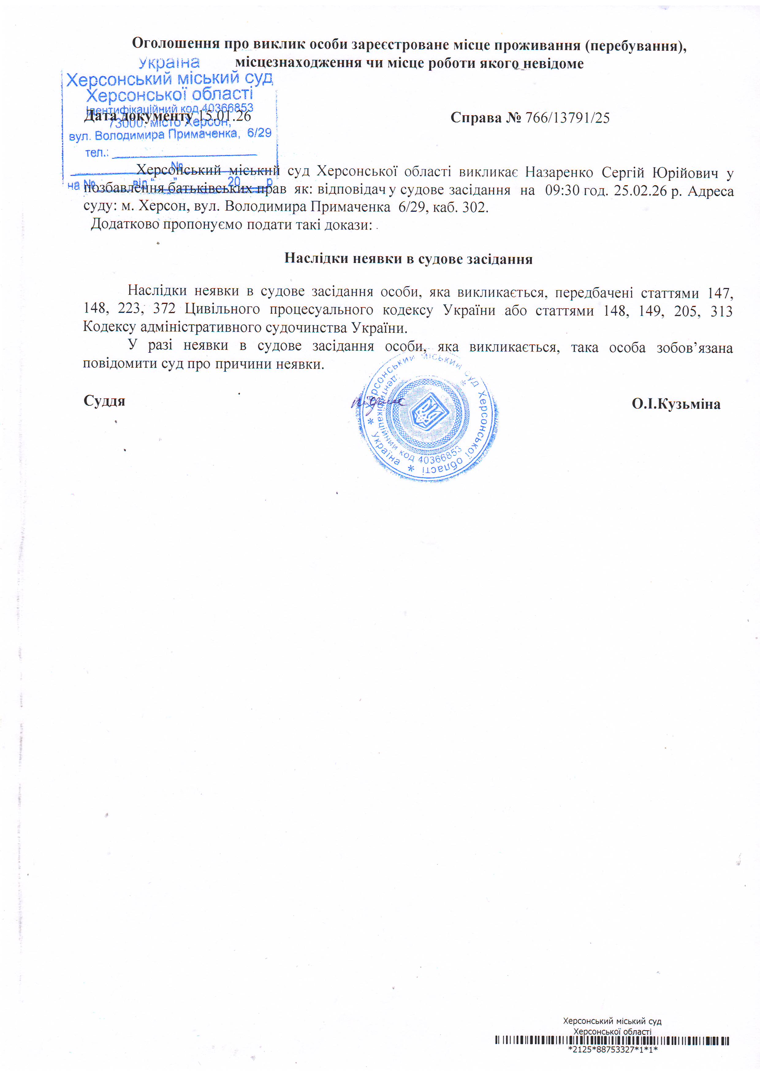 ОГОЛОШЕННЯ ПРО ВИКЛИК ДО СУДУ