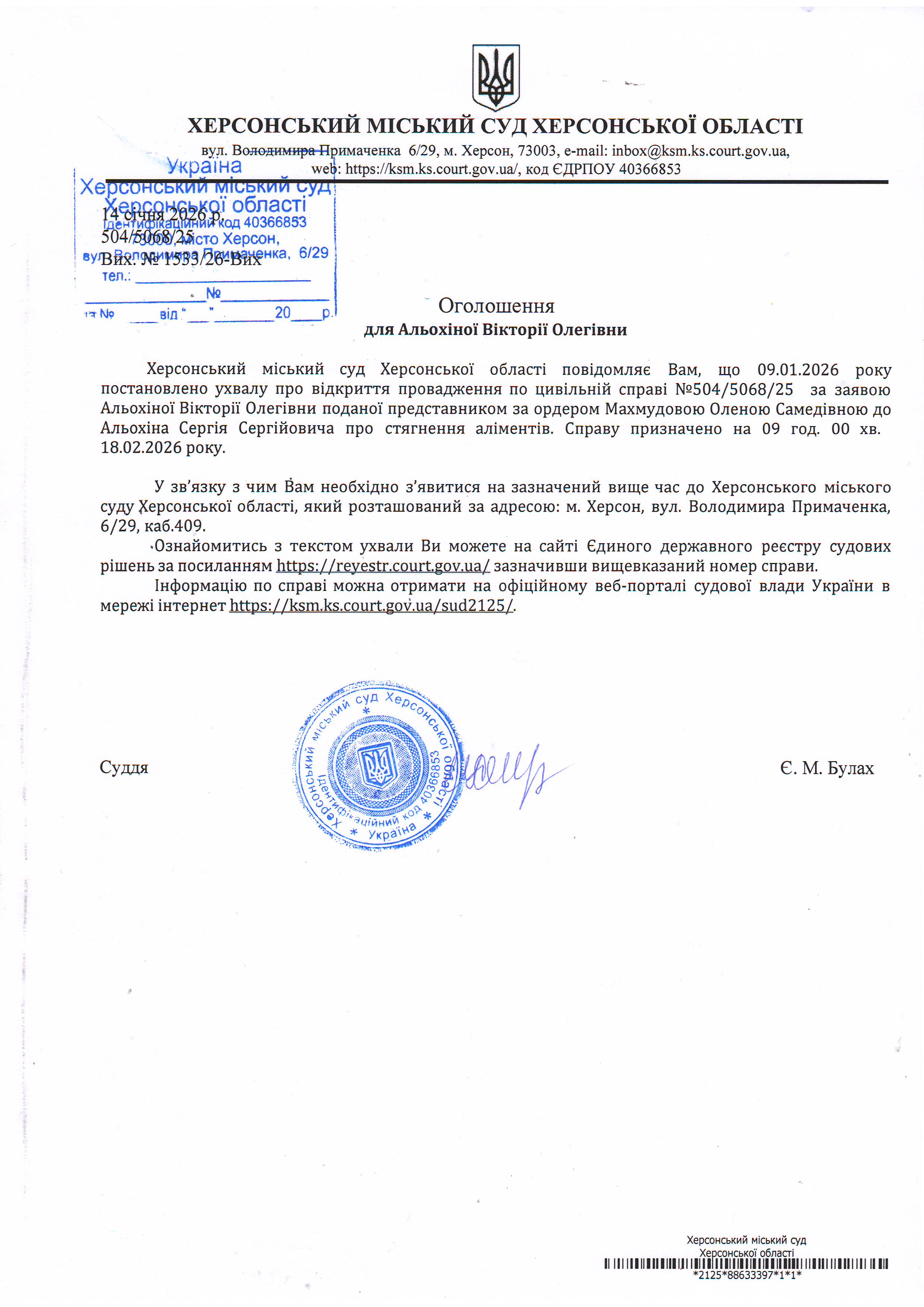ОГОЛОШЕННЯ ПРО ВИКЛИК ДО СУДУ