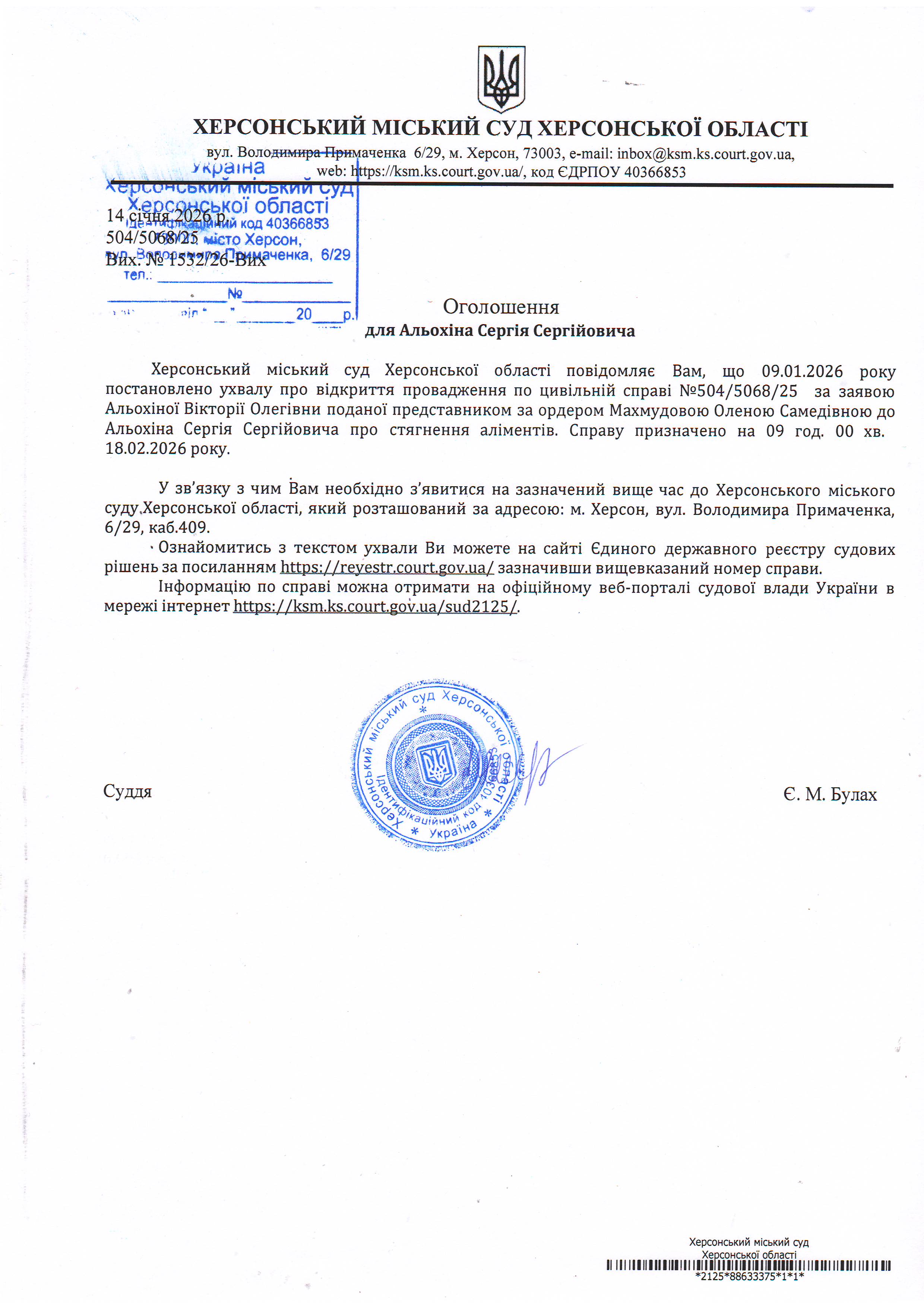 Оголошення про виклик особи в суд та повідомлення про судове рішення
