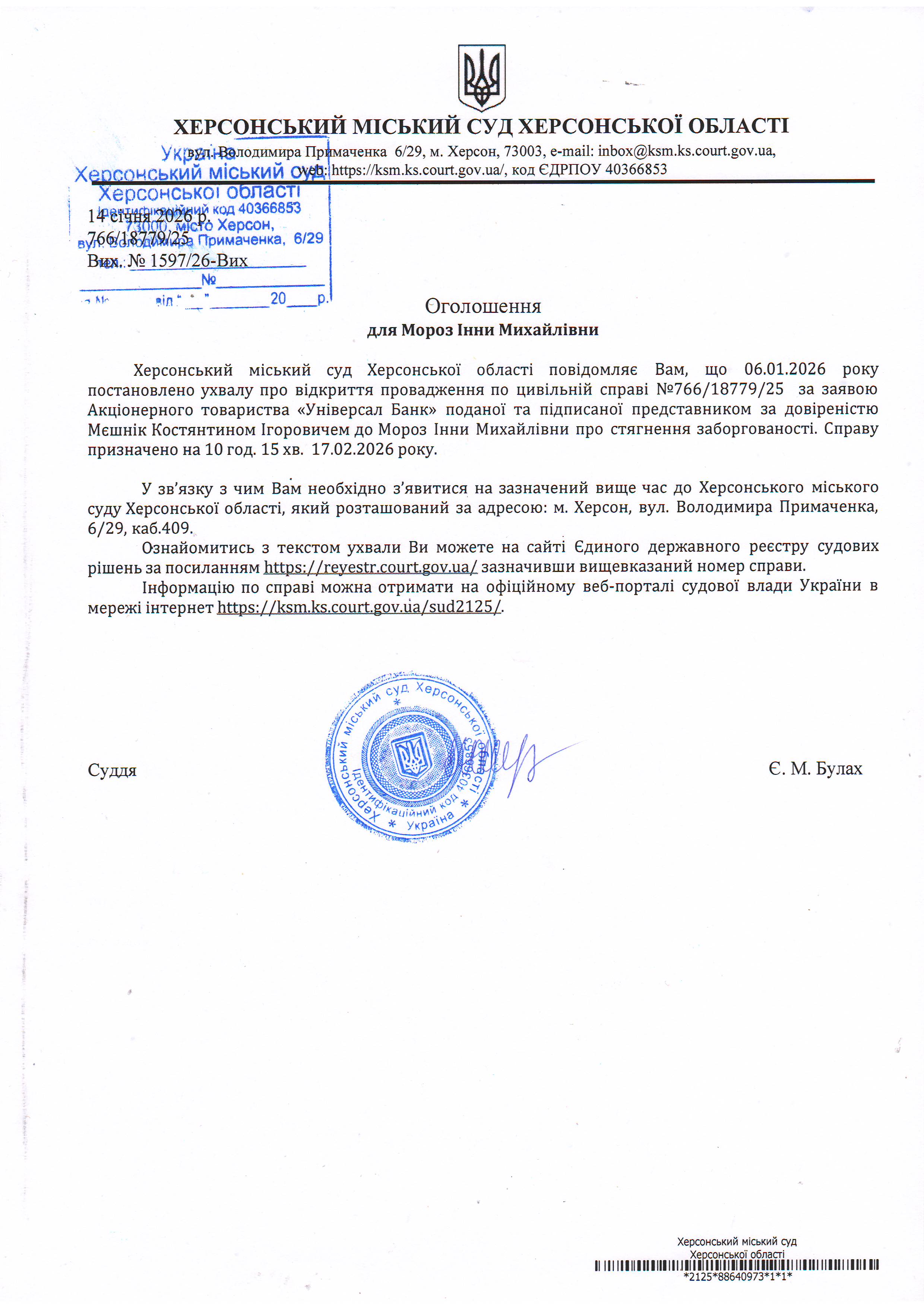 ОГОЛОШЕННЯ ПРО ВИКЛИК ДО СУДУ