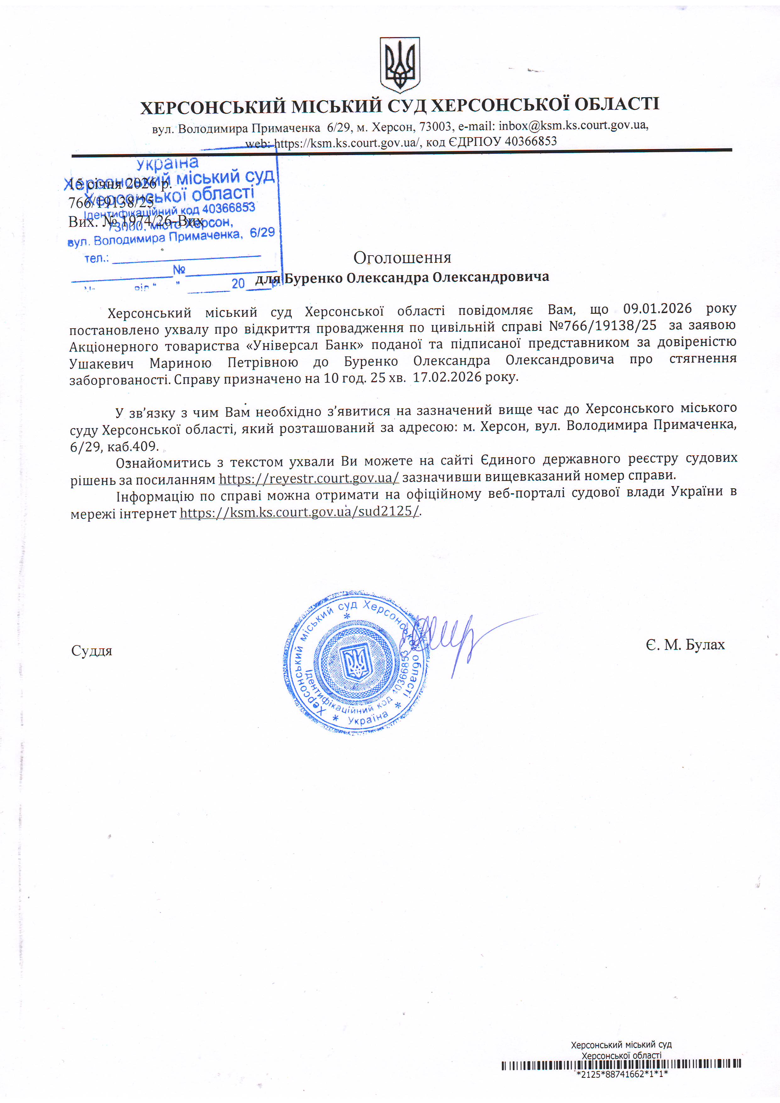 ОГОЛОШЕННЯ ПРО ВИКЛИК ДО СУДУ