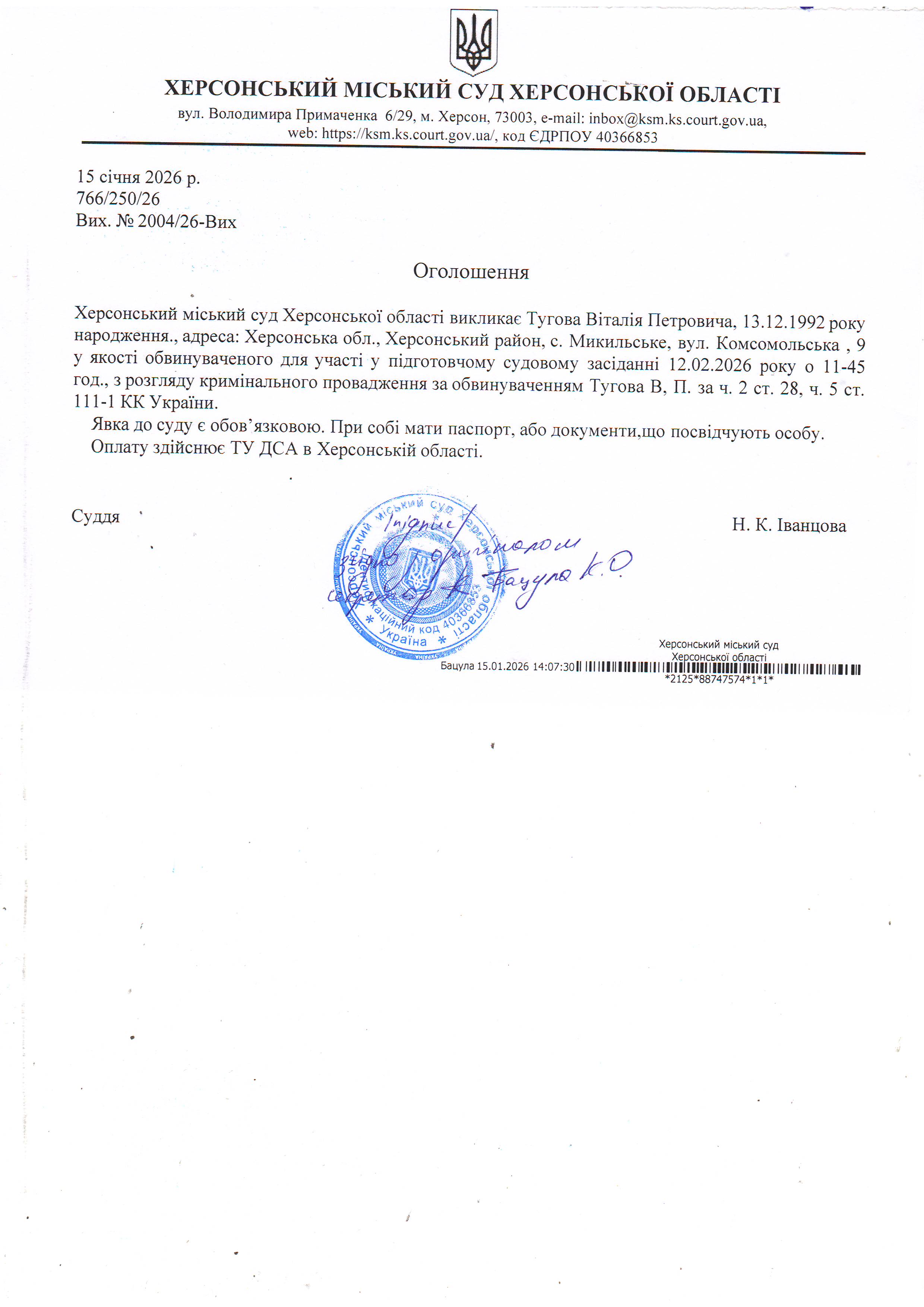 ОГОЛОШЕННЯ ПРО ВИКЛИК ДО СУДУ
