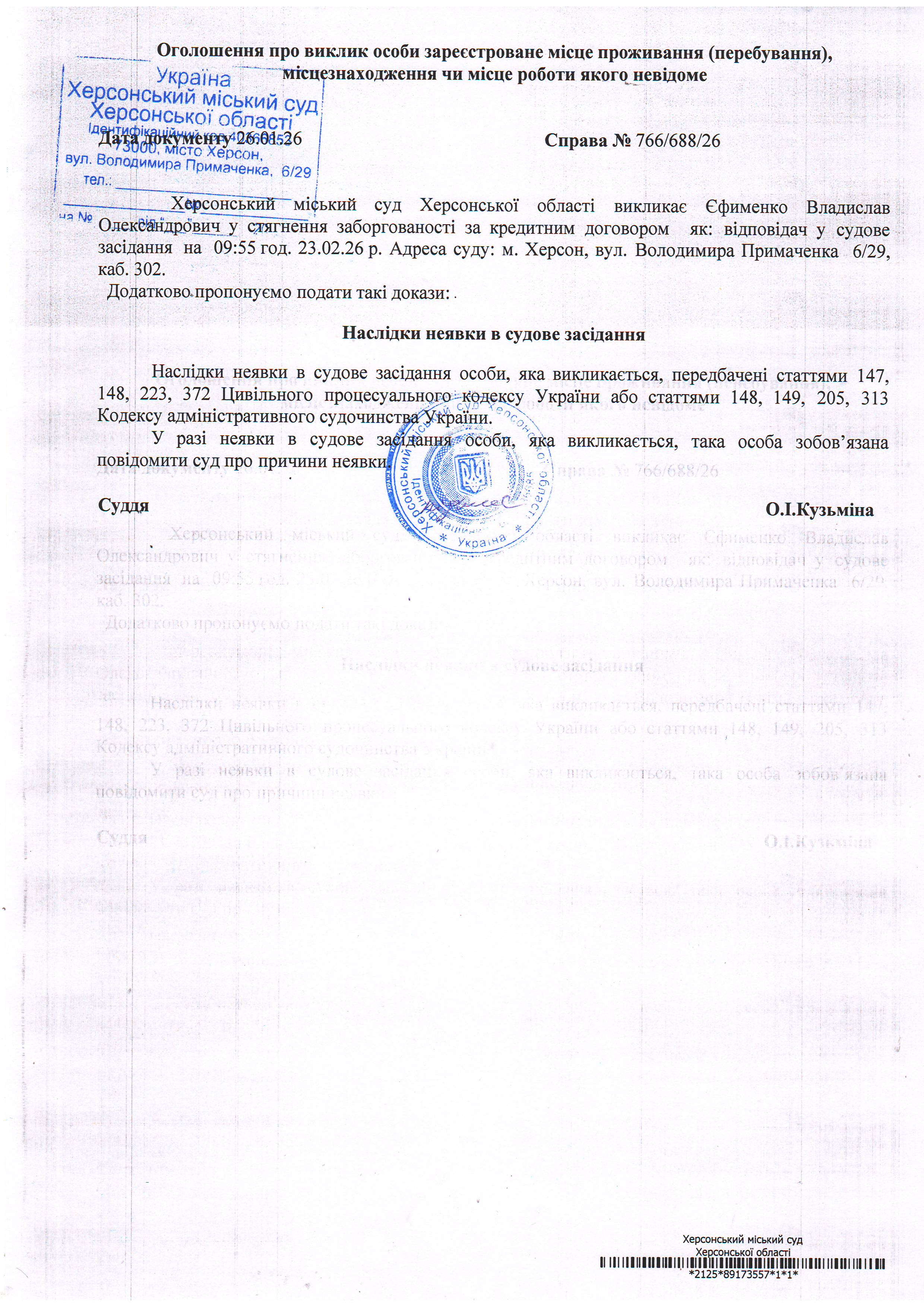 ОГОЛОШЕННЯ ПРО ВИКЛИК ДО СУДУ