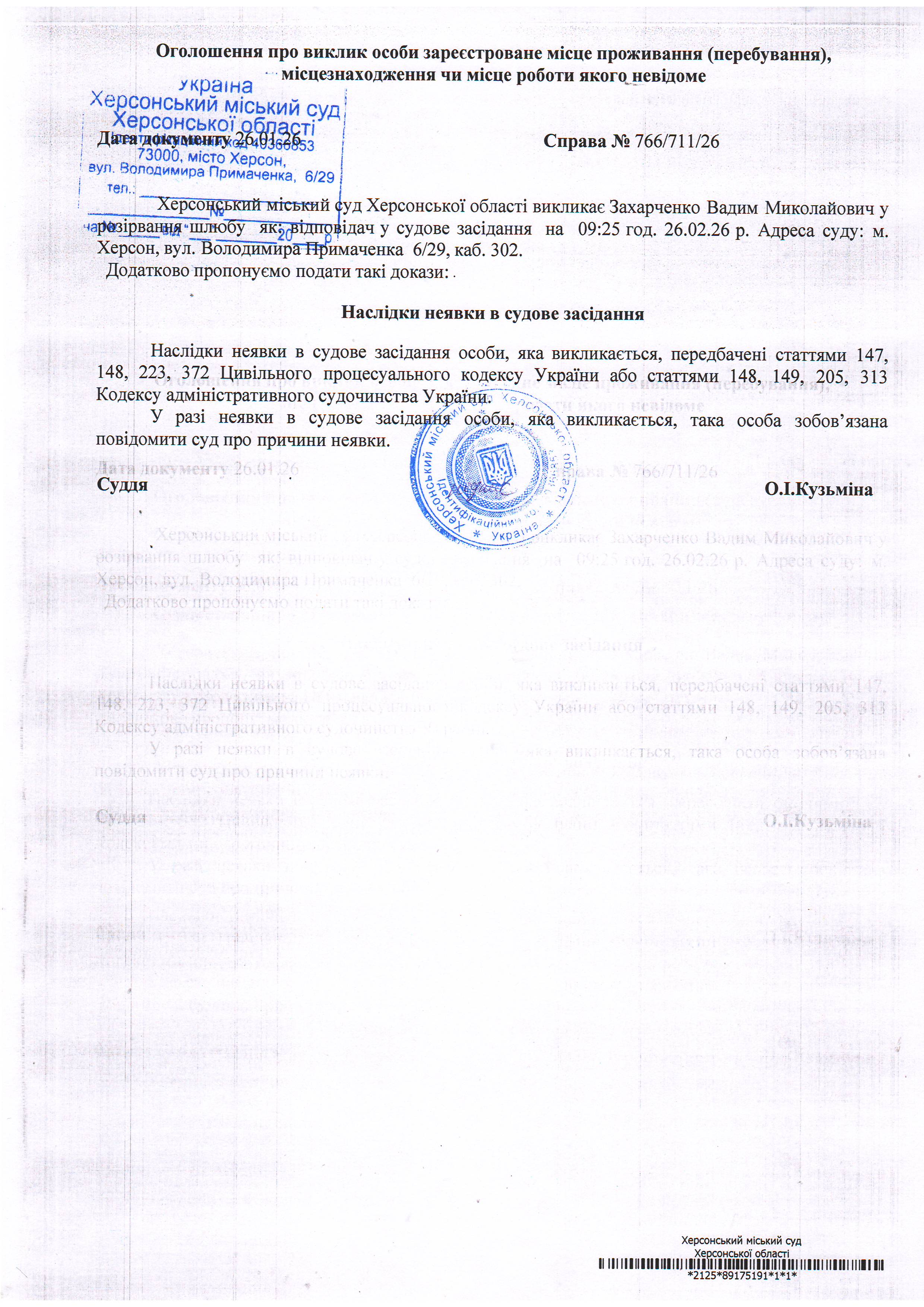 ОГОЛОШЕННЯ ПРО ВИКЛИК ДО СУДУ