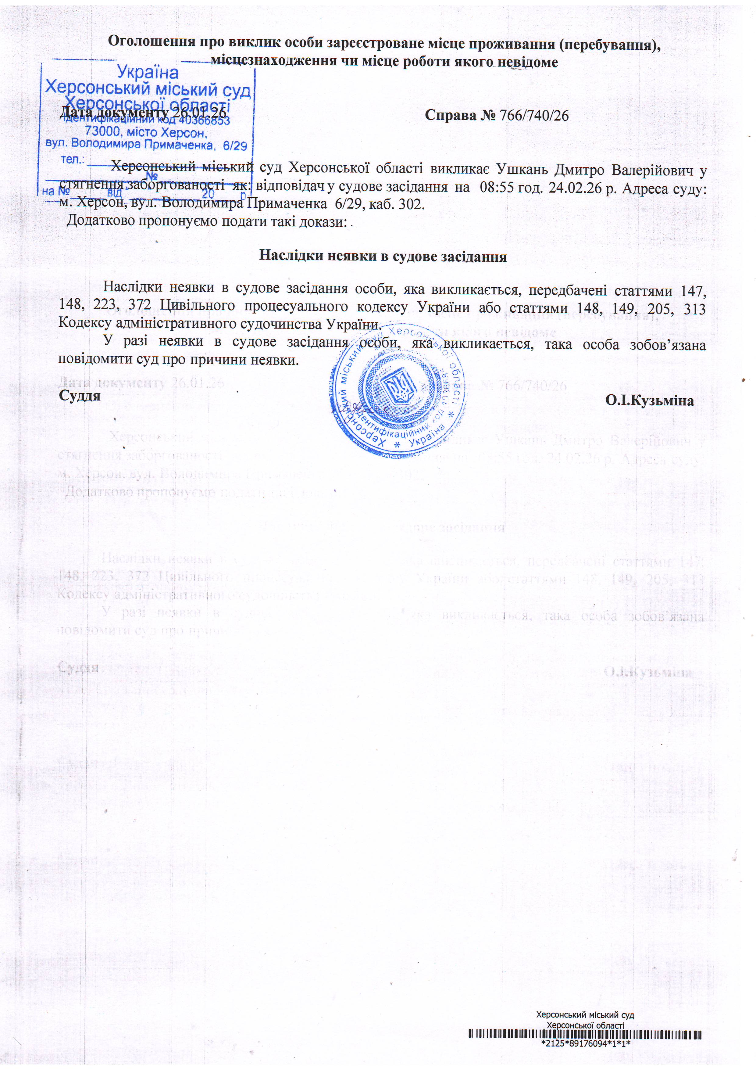 ОГОЛОШЕННЯ ПРО ВИКЛИК ДО СУДУ