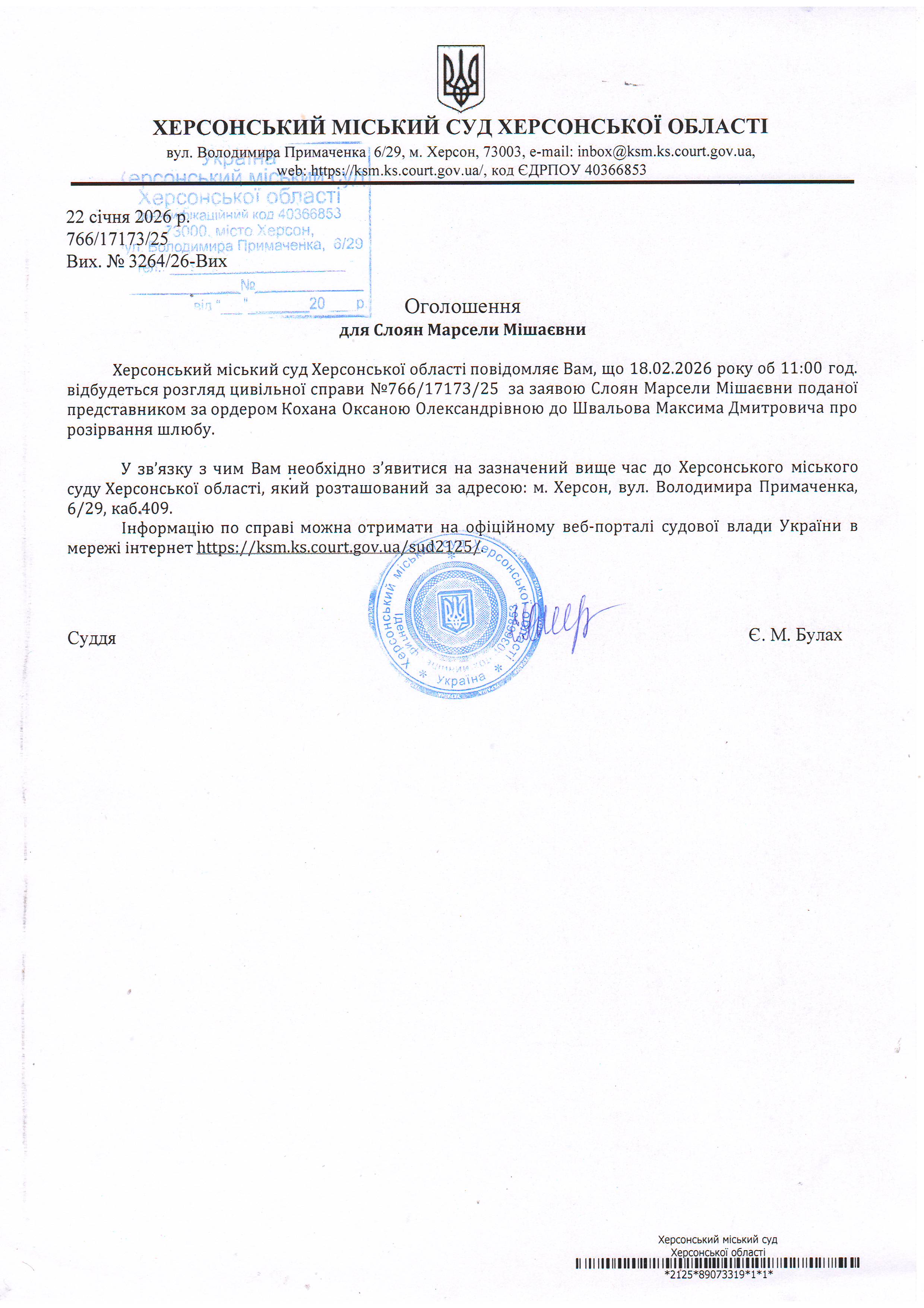 ОГОЛОШЕННЯ ПРО ВИКЛИК ДО СУДУ