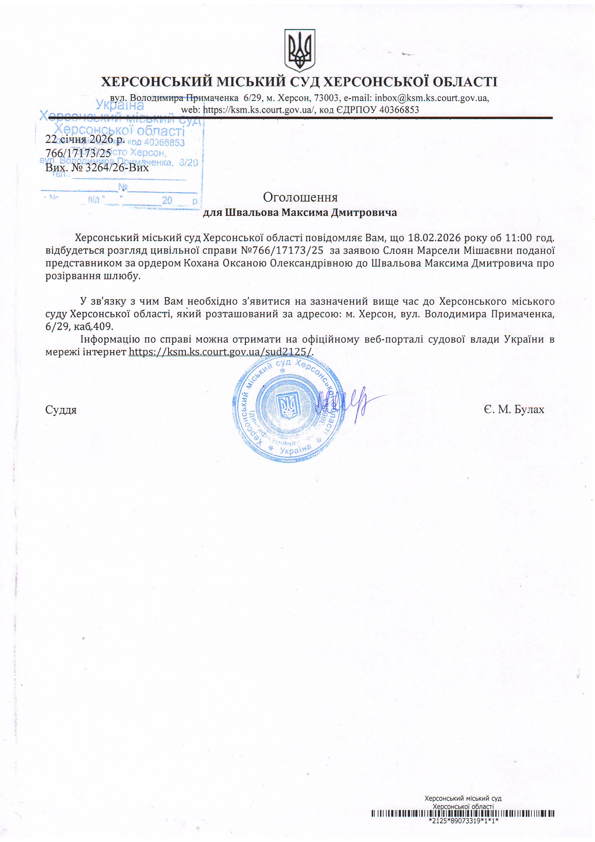ОГОЛОШЕННЯ ПРО ВИКЛИК ДО СУДУ