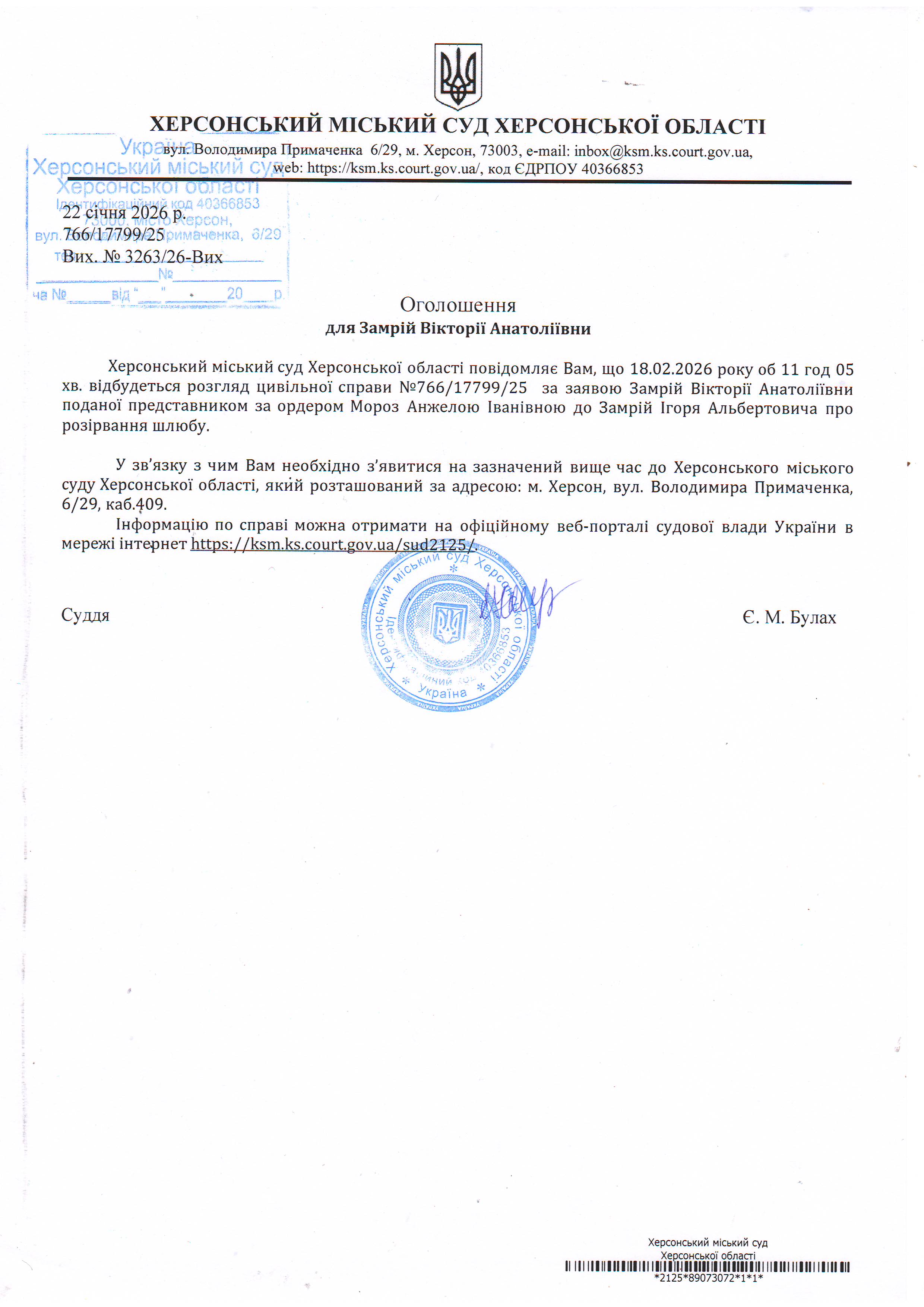 ОГОЛОШЕННЯ ПРО ВИКЛИК ДО СУДУ