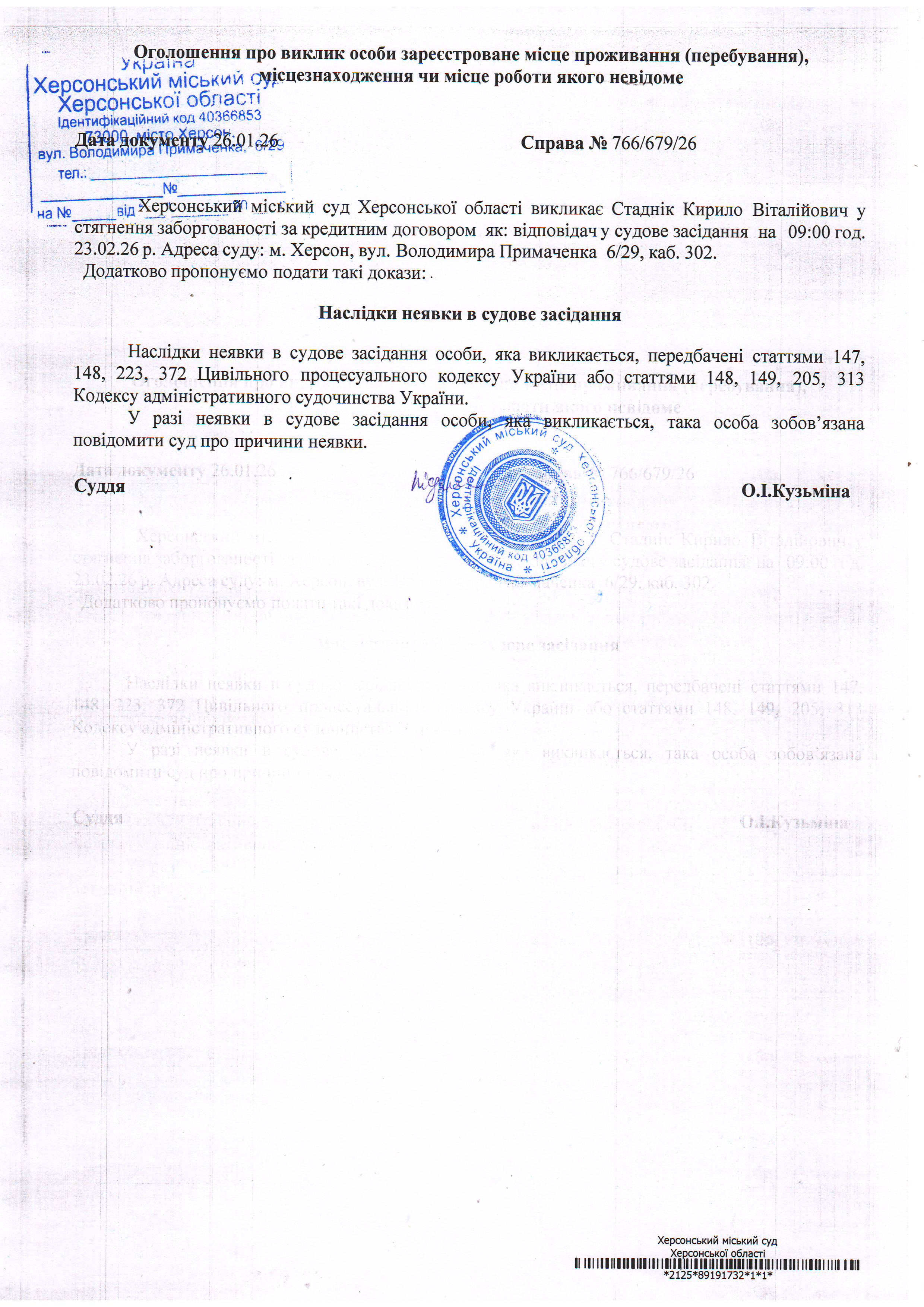 ОГОЛОШЕННЯ ПРО ВИКЛИК ДО СУДУ
