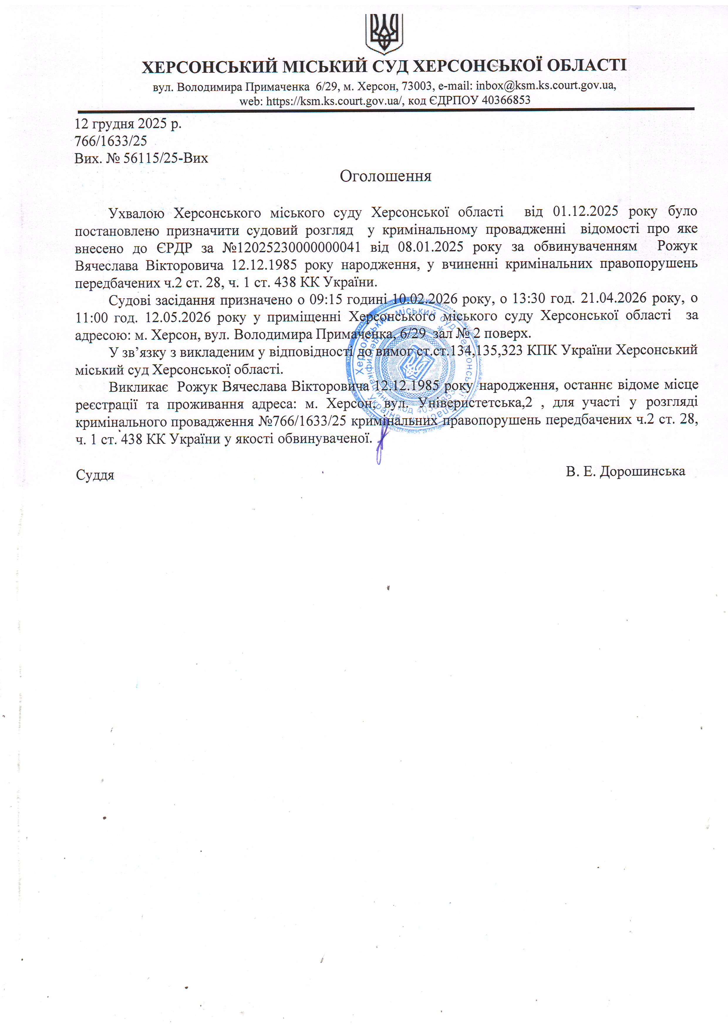 ОГОЛОШЕННЯ ПРО ВИКЛИК ДО СУДУ
