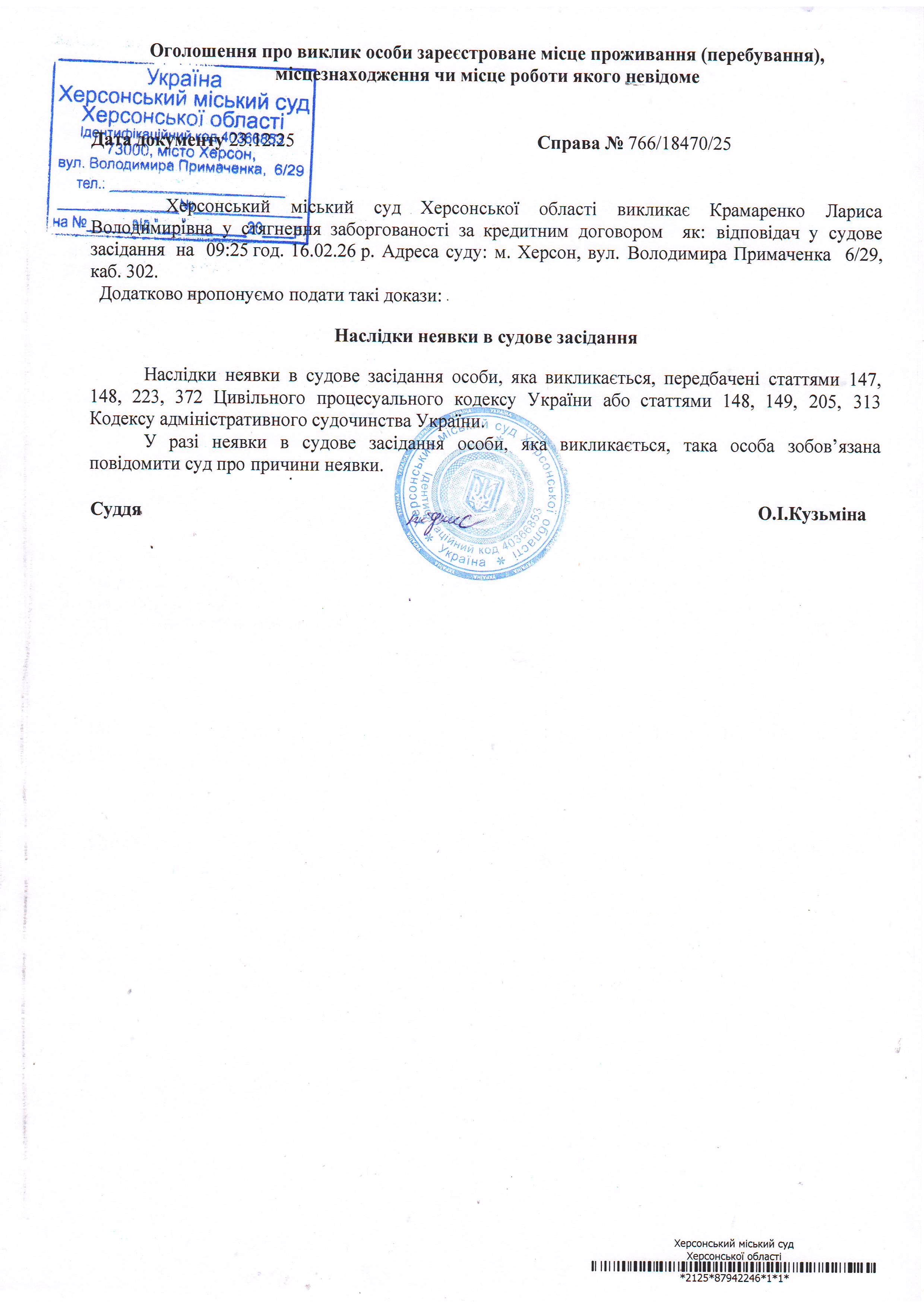 ОГОЛОШЕННЯ ПРО ВИКЛИК ДО СУДУ