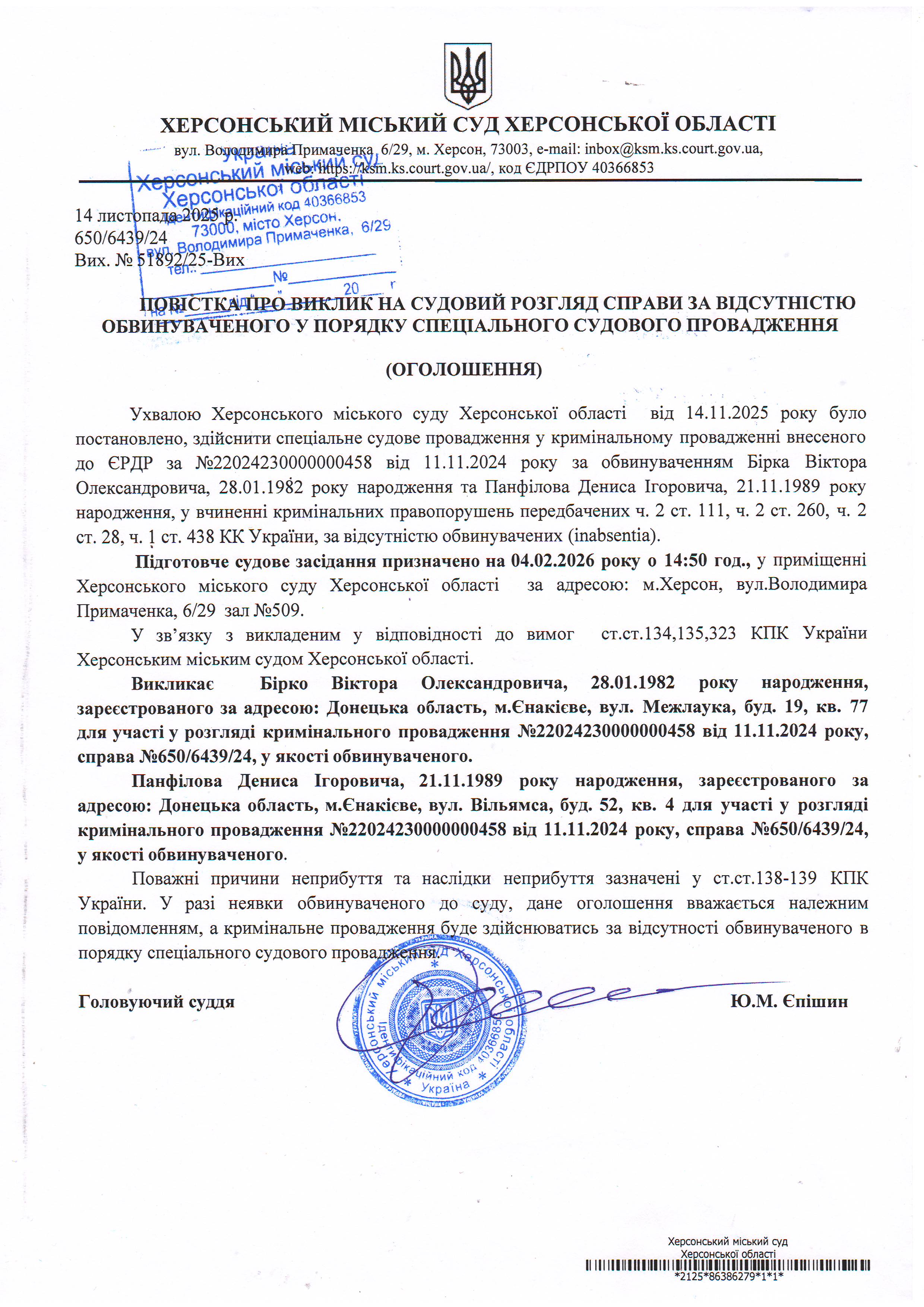 ОГОЛОШЕННЯ ПРО ВИКЛИК ДО СУДУ