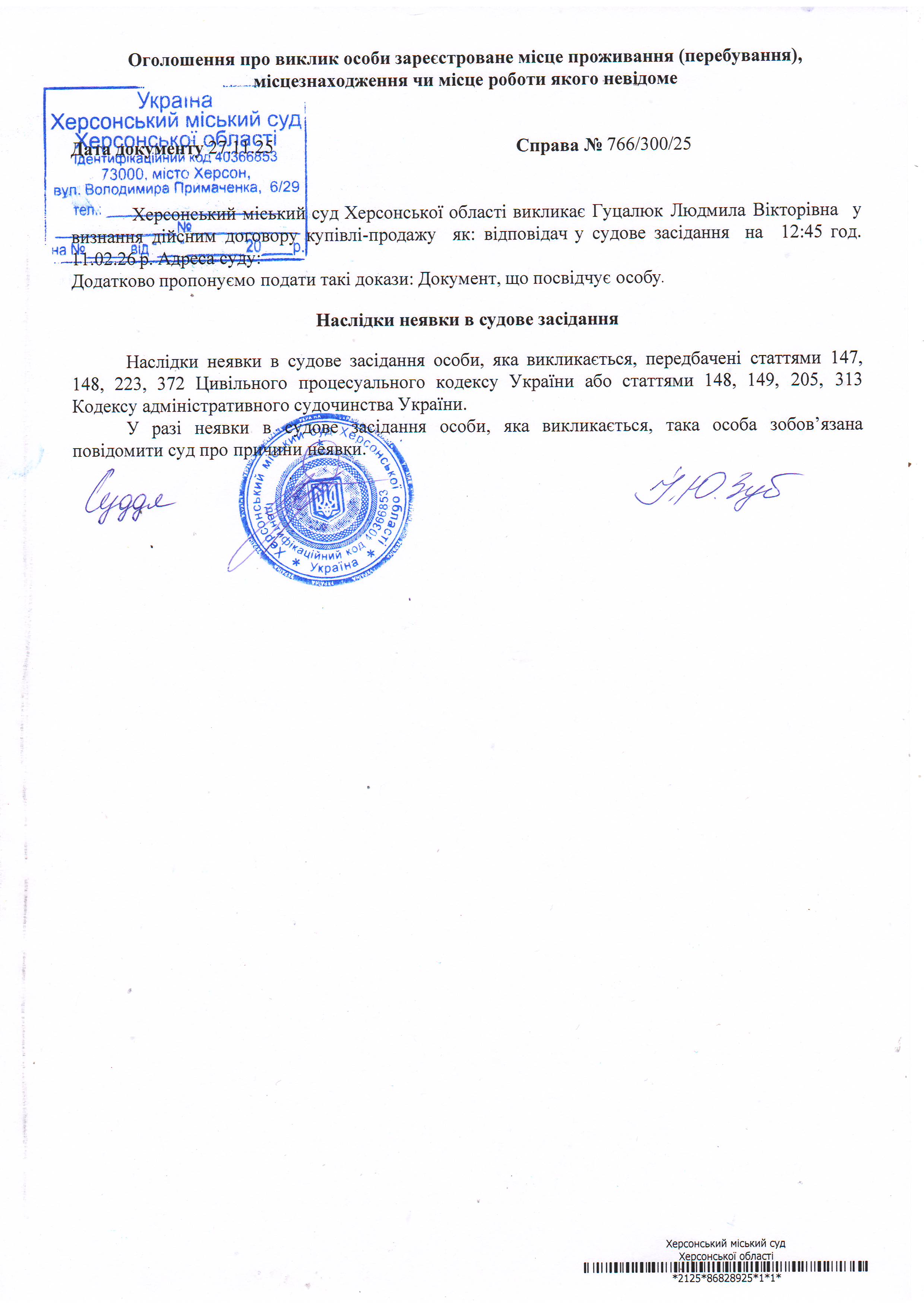 ОГОЛОШЕННЯ ПРО ВИКЛИК ДО СУДУ