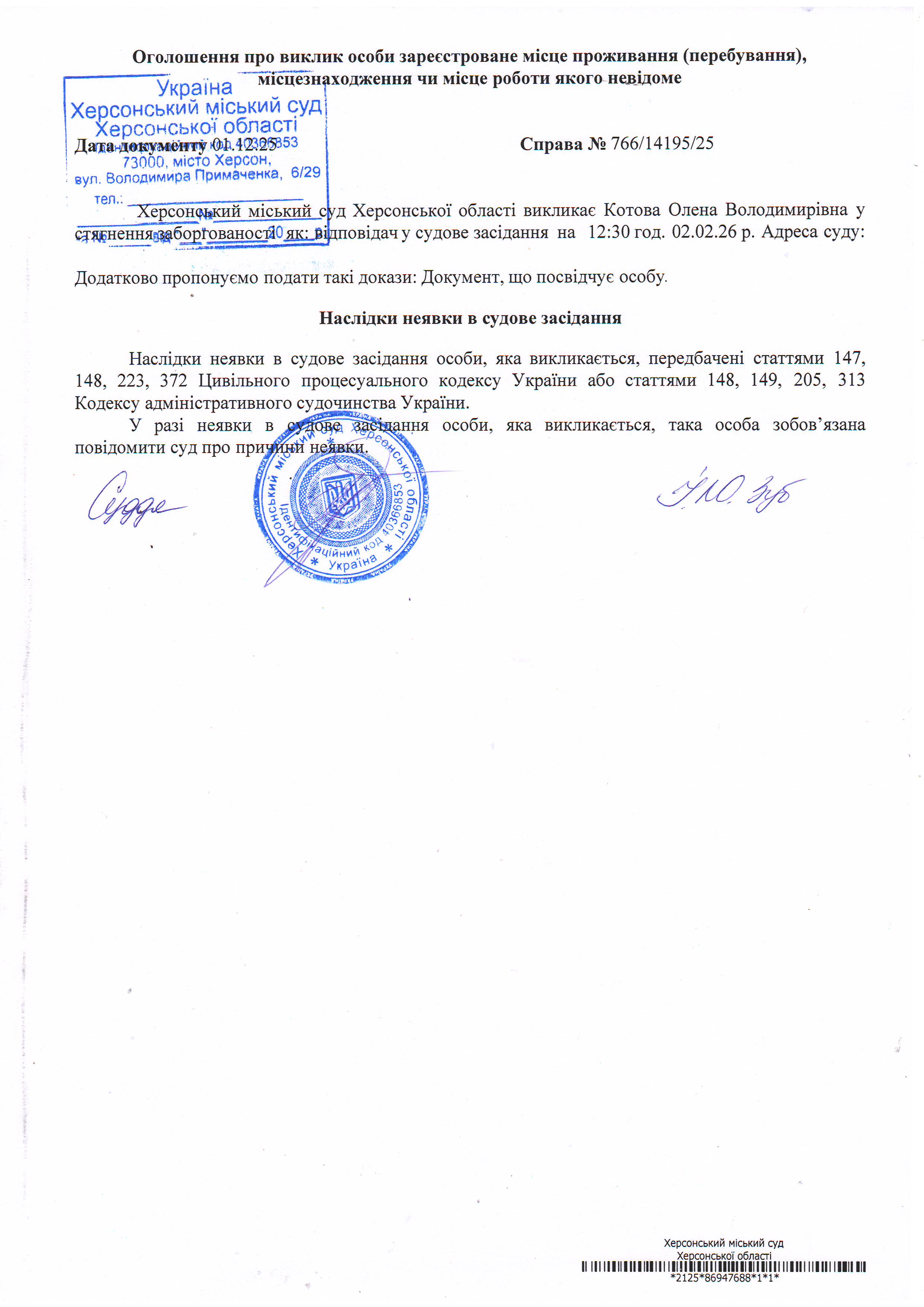 ОГОЛОШЕННЯ ПРО ВИКЛИК ДО СУДУ