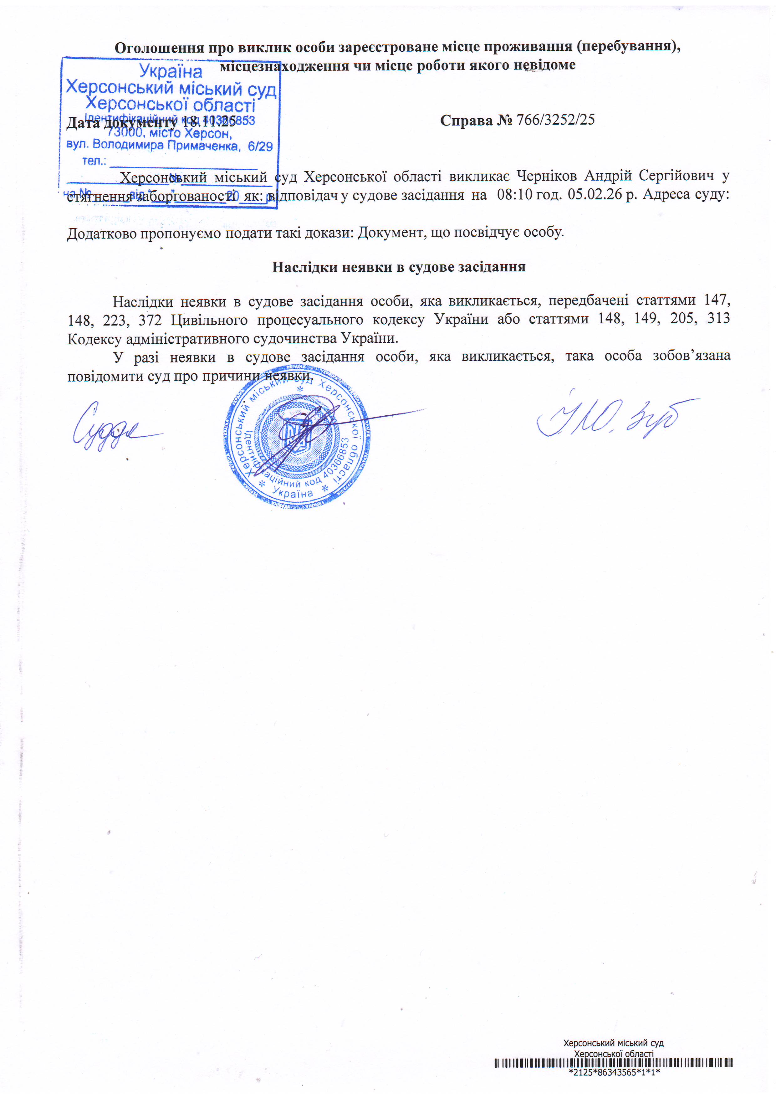ОГОЛОШЕННЯ ПРО ВИКЛИК ДО СУДУ