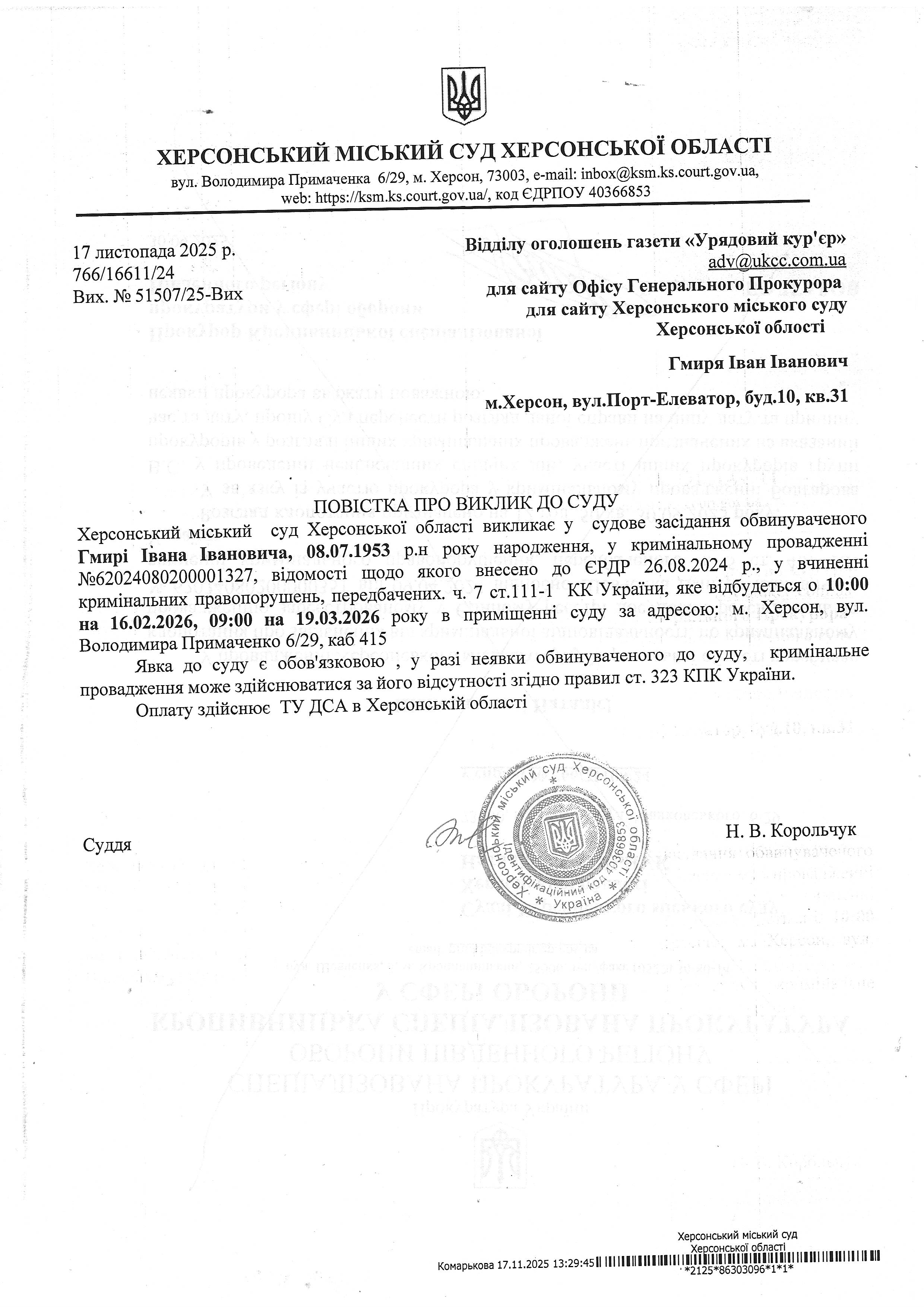 ОГОЛОШЕННЯ ПРО ВИКЛИК ДО СУДУ