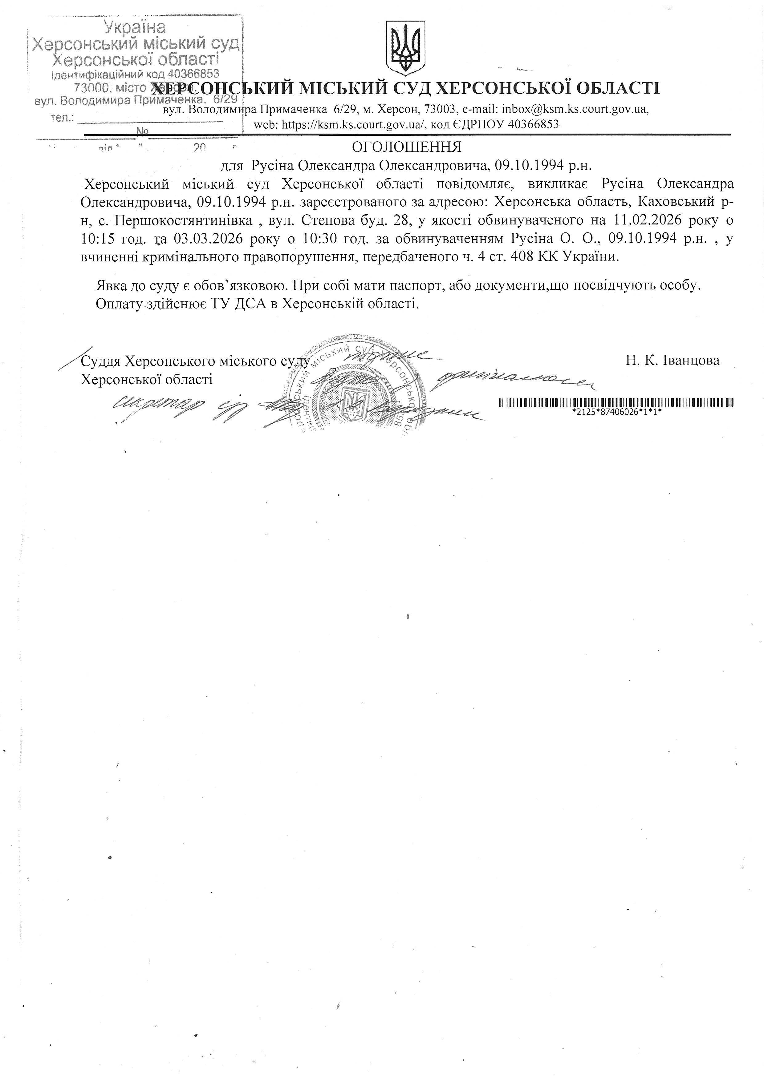 ОГОЛОШЕННЯ ПРО ВИКЛИК ДО СУДУ