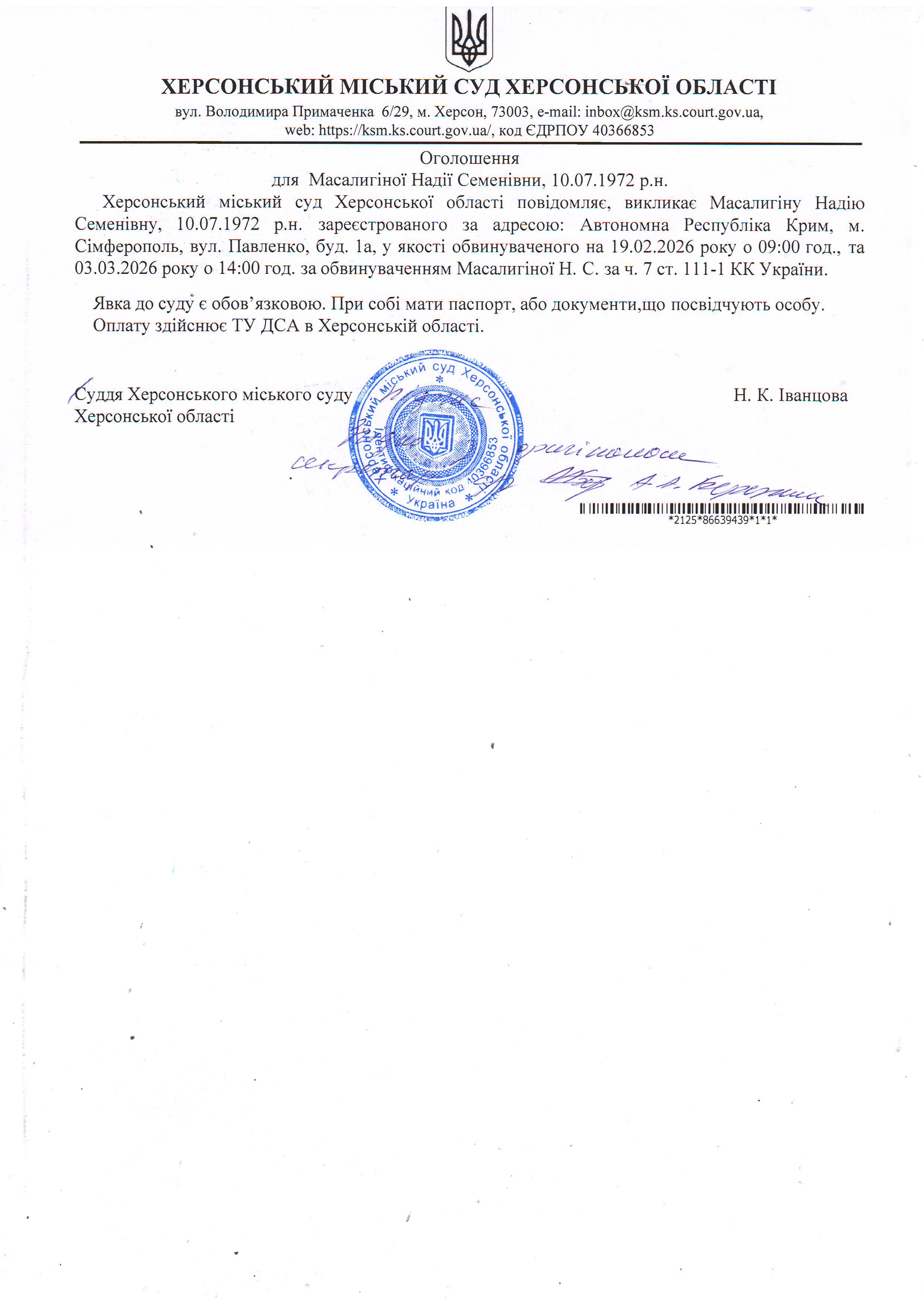 ОГОЛОШЕННЯ ПРО ВИКЛИК ДО СУДУ