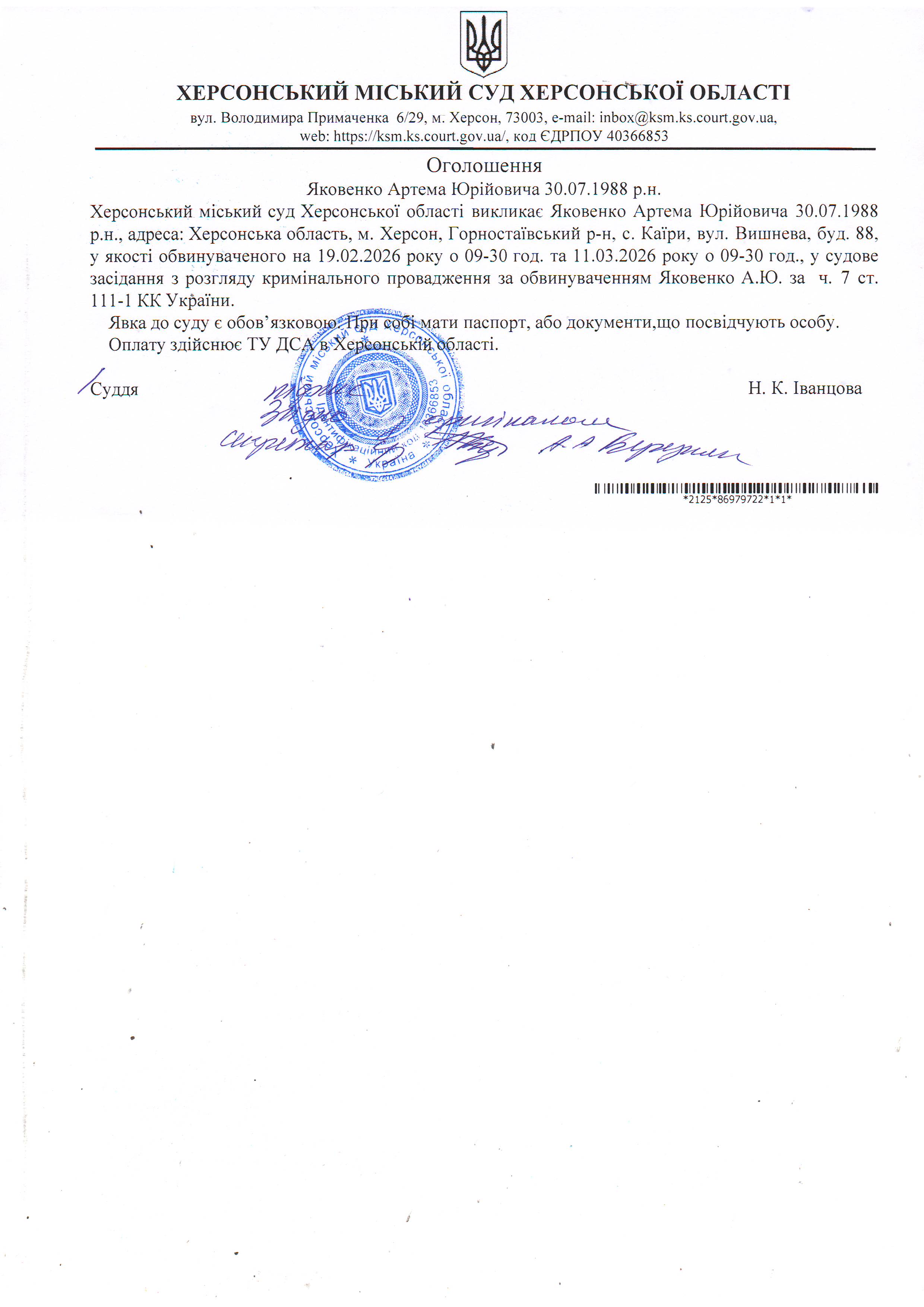 ОГОЛОШЕННЯ ПРО ВИКЛИК ДО СУДУ
