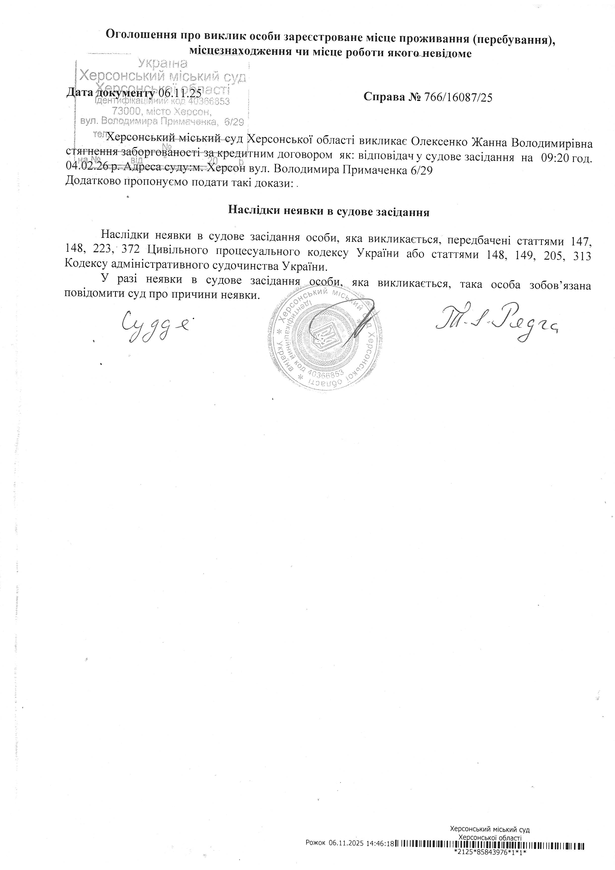 ОГОЛОШЕННЯ ПРО ВИКЛИК ДО СУДУ