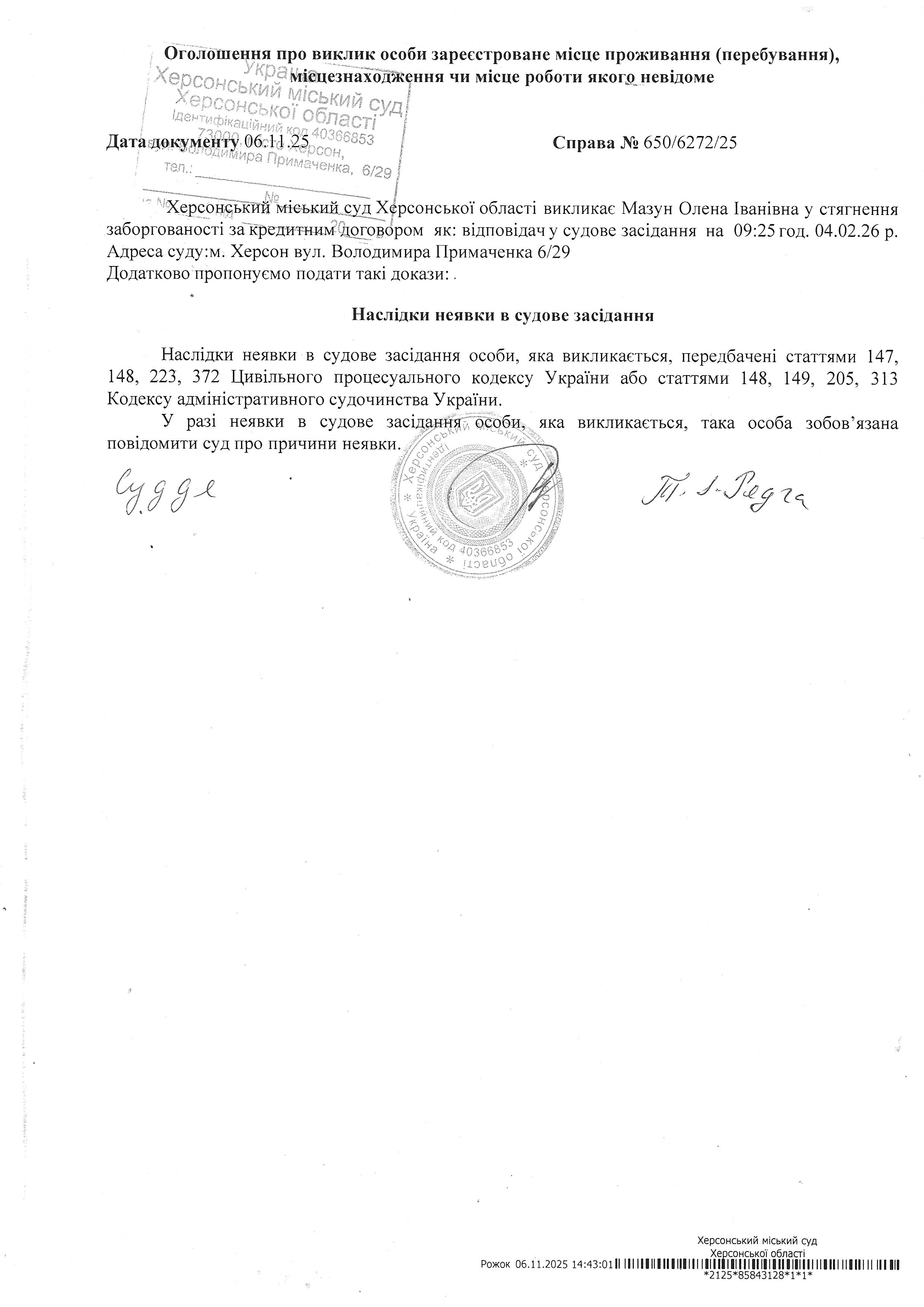 ОГОЛОШЕННЯ ПРО ВИКЛИК ДО СУДУ