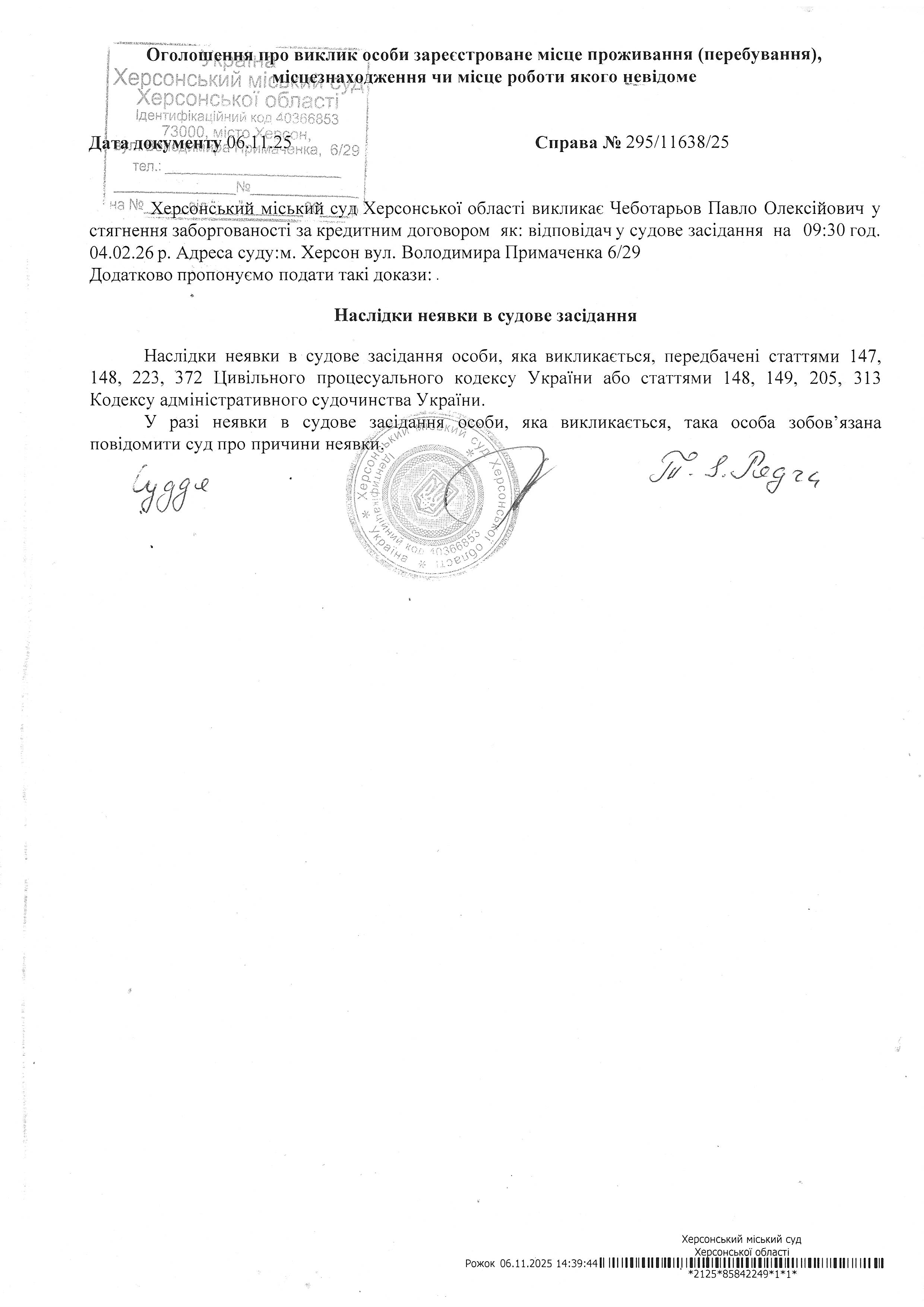 ОГОЛОШЕННЯ ПРО ВИКЛИК ДО СУДУ
