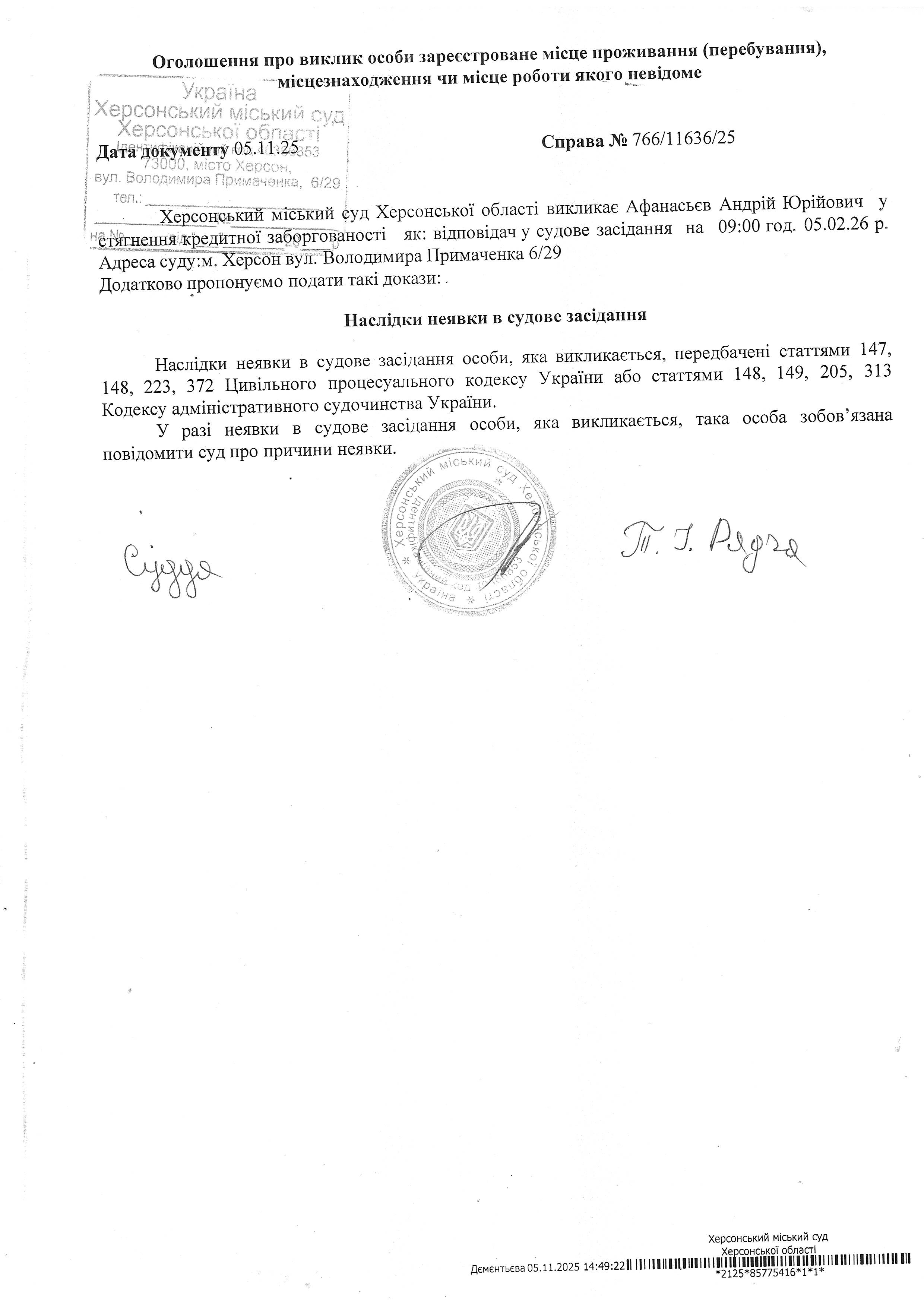 ОГОЛОШЕННЯ ПРО ВИКЛИК ДО СУДУ