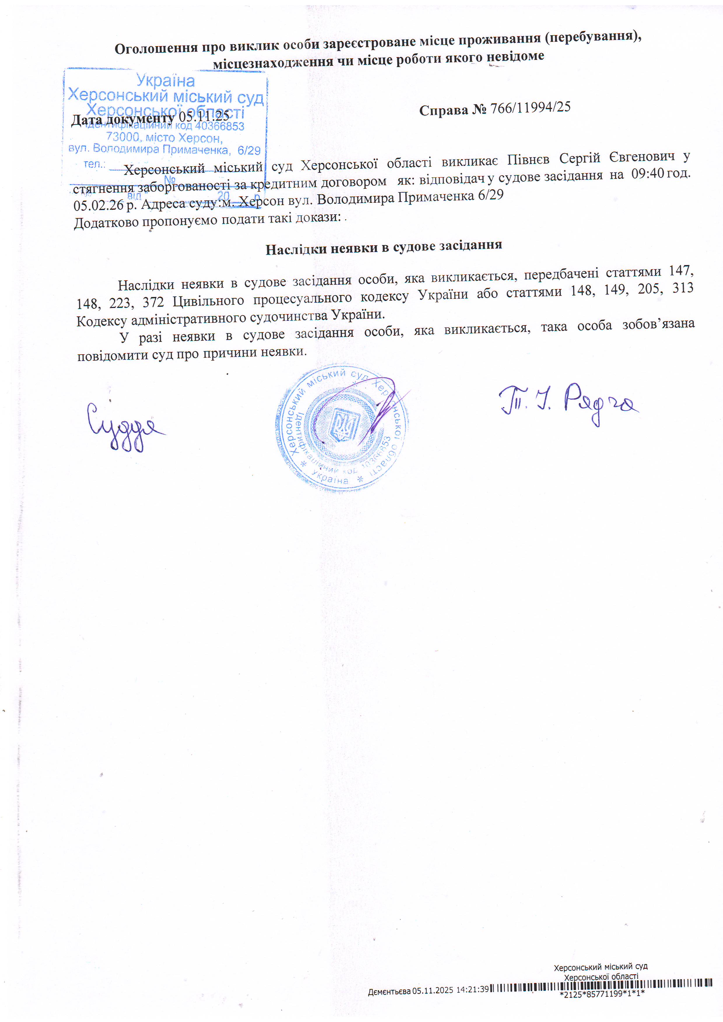 ОГОЛОШЕННЯ ПРО ВИКЛИК ДО СУДУ