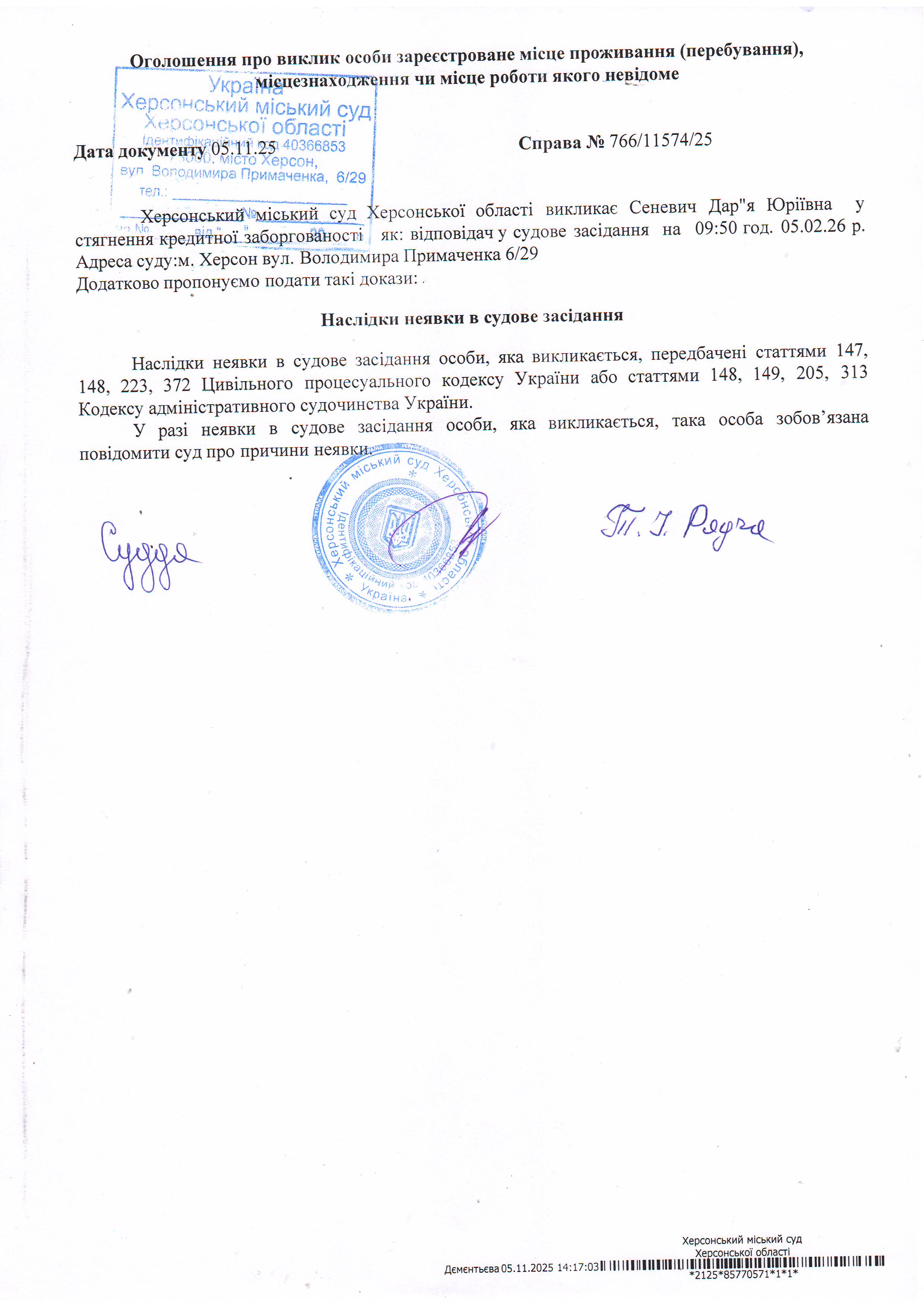 ОГОЛОШЕННЯ ПРО ВИКЛИК ДО СУДУ