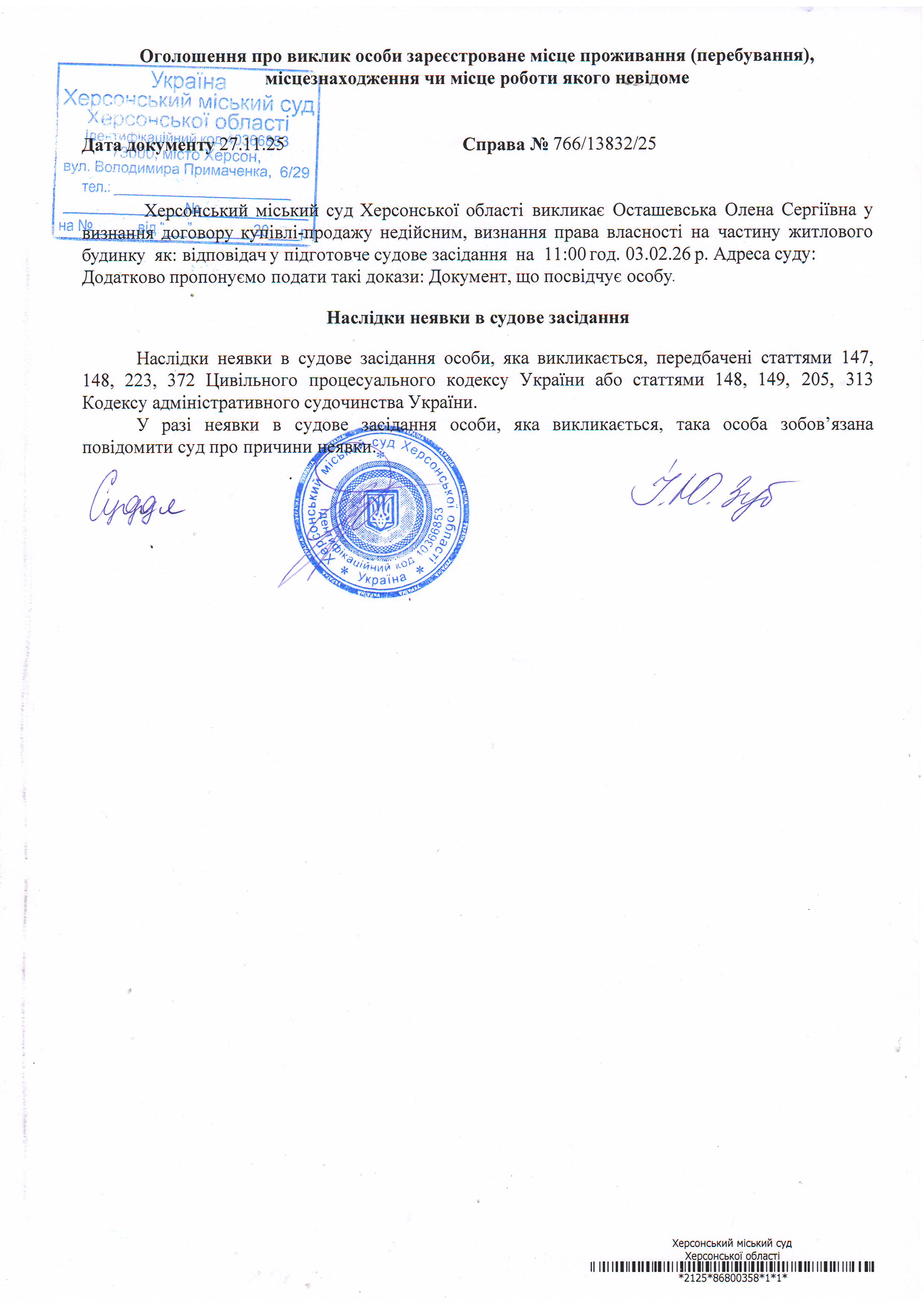 ОГОЛОШЕННЯ ПРО ВИКЛИК ДО СУДУ