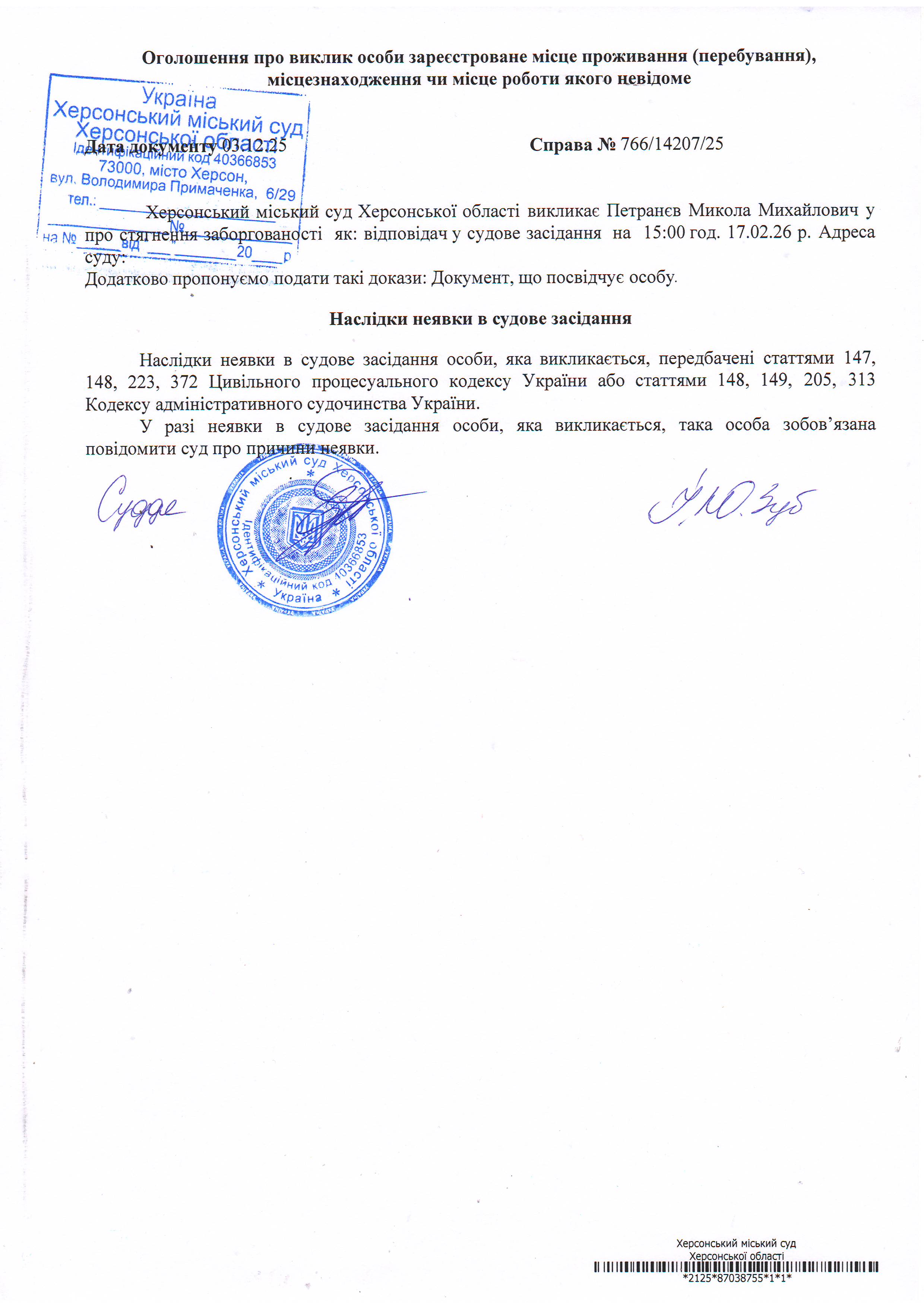 ОГОЛОШЕННЯ ПРО ВИКЛИК ДО СУДУ