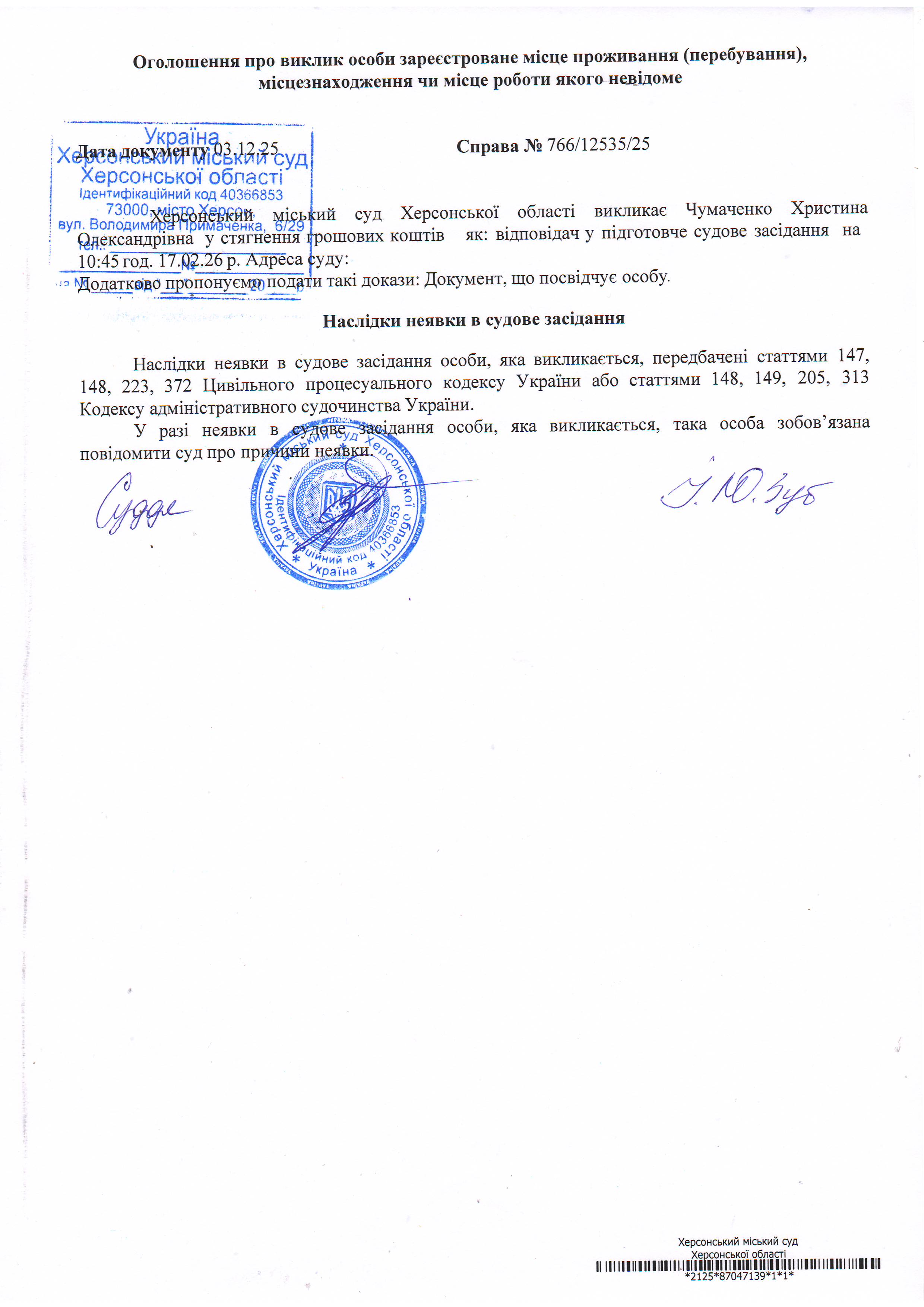 ОГОЛОШЕННЯ ПРО ВИКЛИК ДО СУДУ