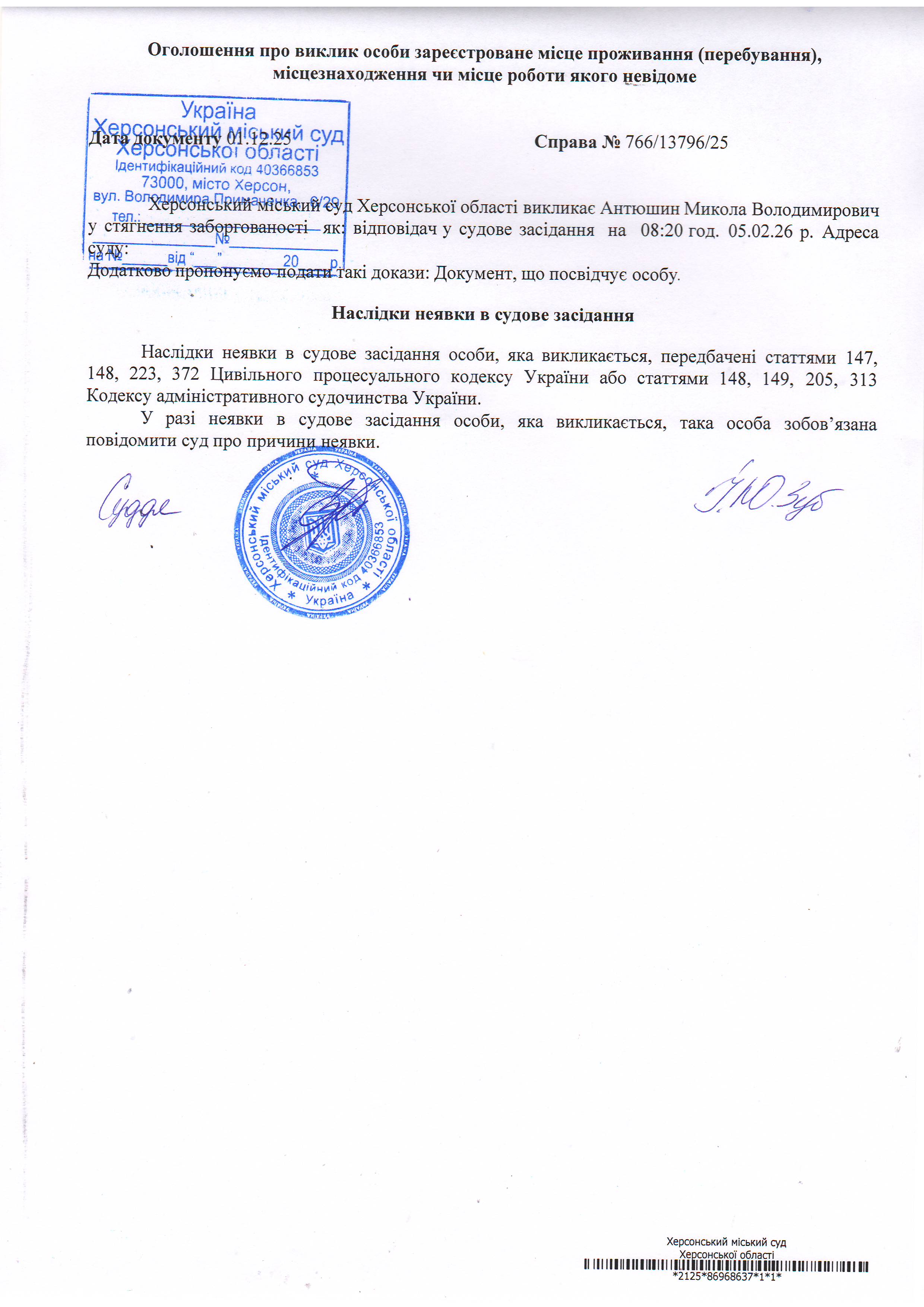 ОГОЛОШЕННЯ ПРО ВИКЛИК ДО СУДУ