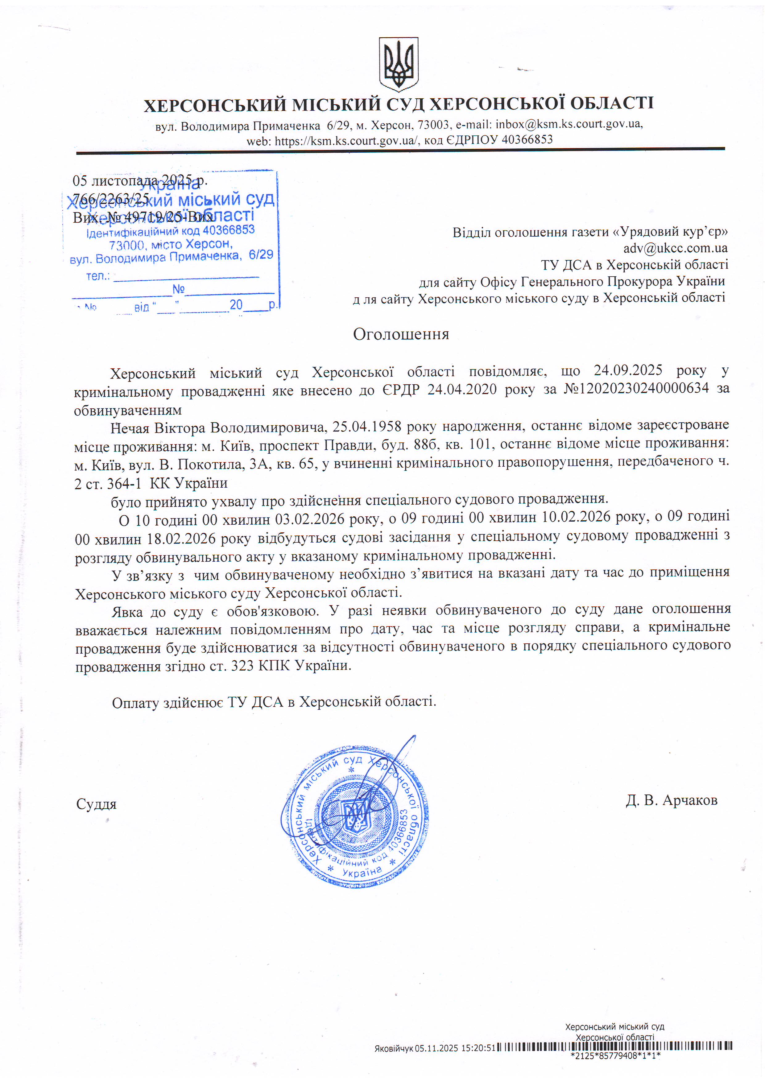 ОГОЛОШЕННЯ ПРО ВИКЛИК ДО СУДУ