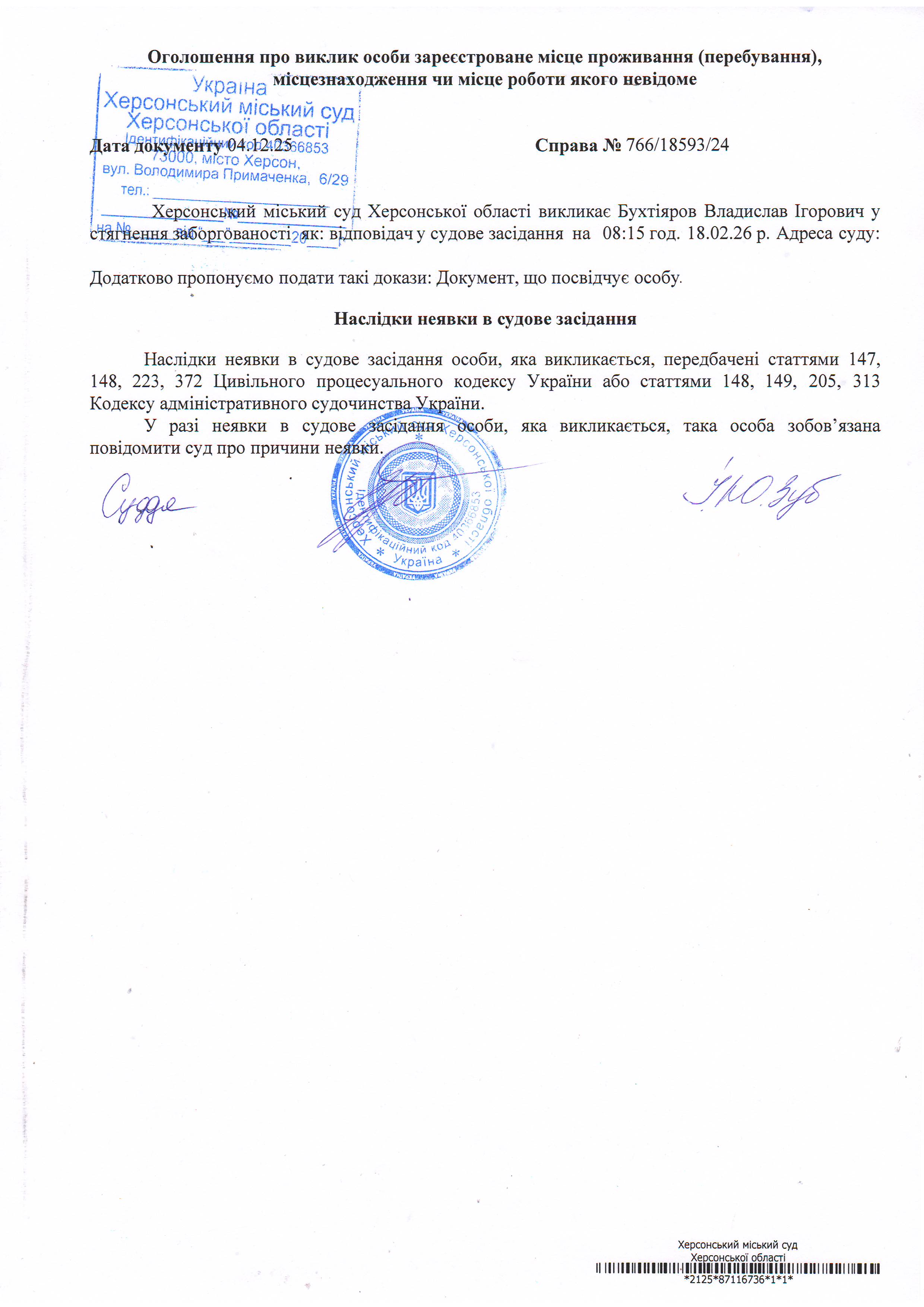 ОГОЛОШЕННЯ ПРО ВИКЛИК ДО СУДУ