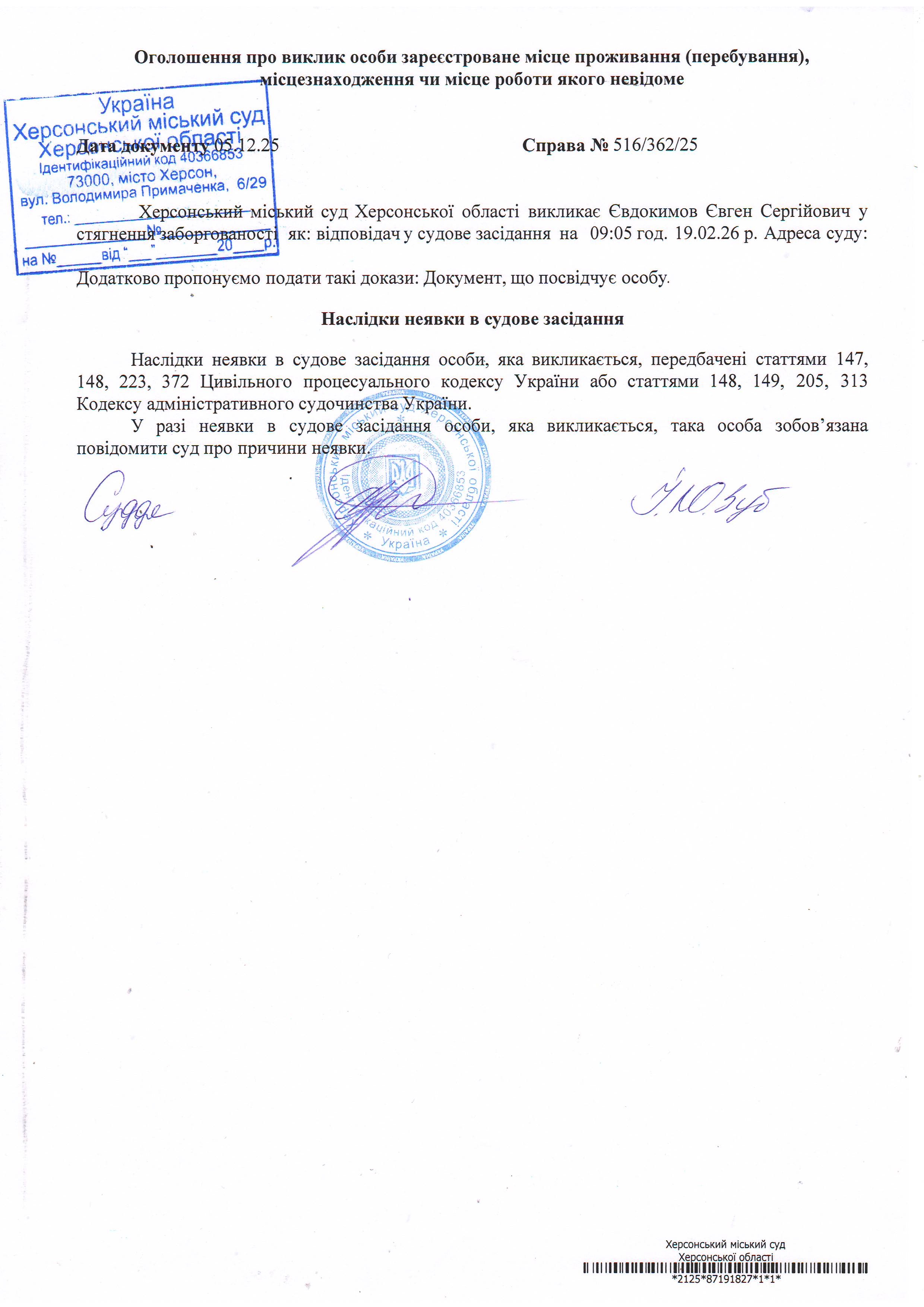 ОГОЛОШЕННЯ ПРО ВИКЛИК ДО СУДУ
